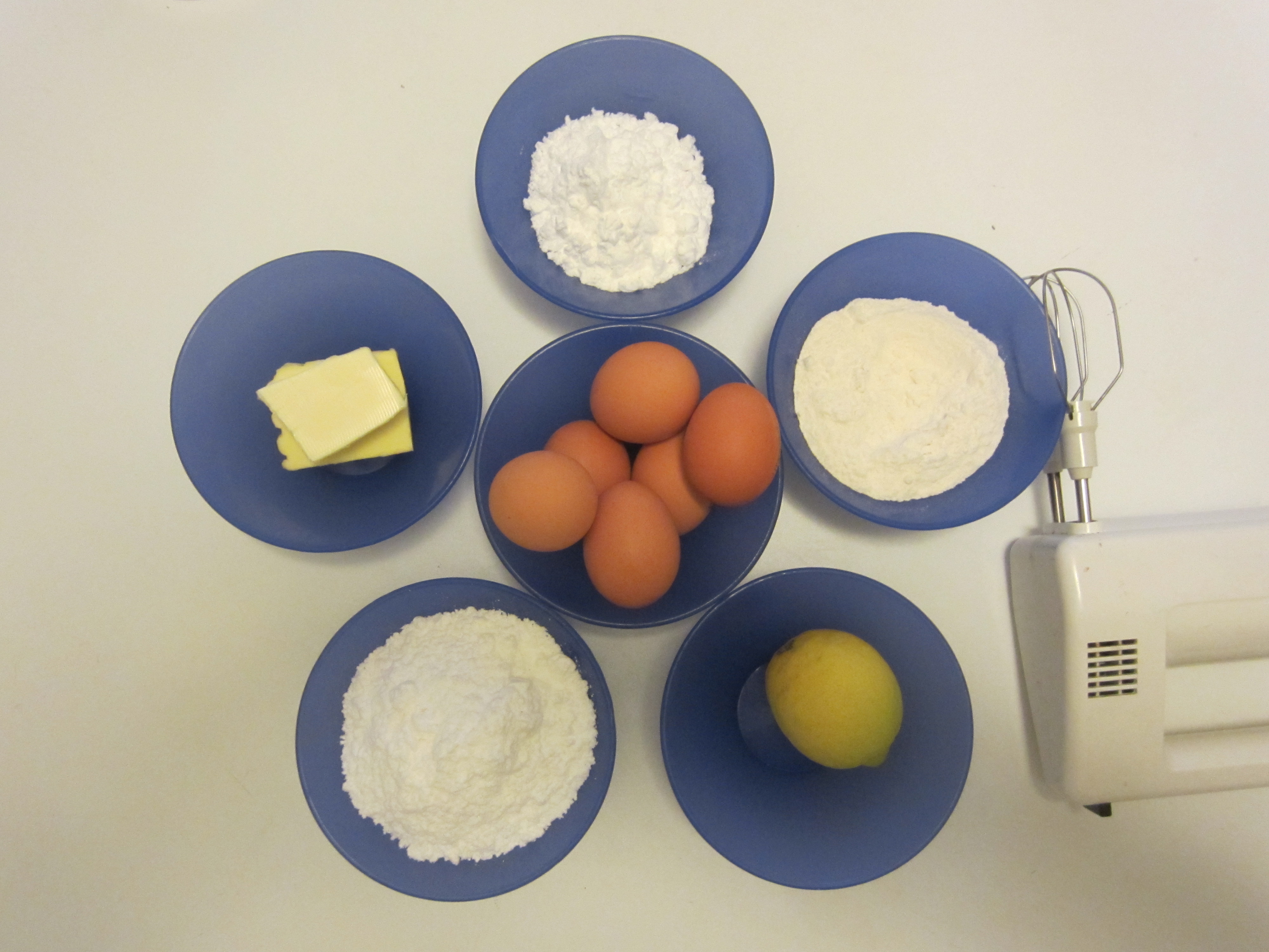 100g of flour 00, 100g of potato starch, 80g of melted butter, 200g of icing sugar, 6 fresh eggs, the grated rind of one lemon bio (or less if you wish – in alternative you may add vanilla extract), a pinch of salt, butter and flour for the mold of 24 cm diameter