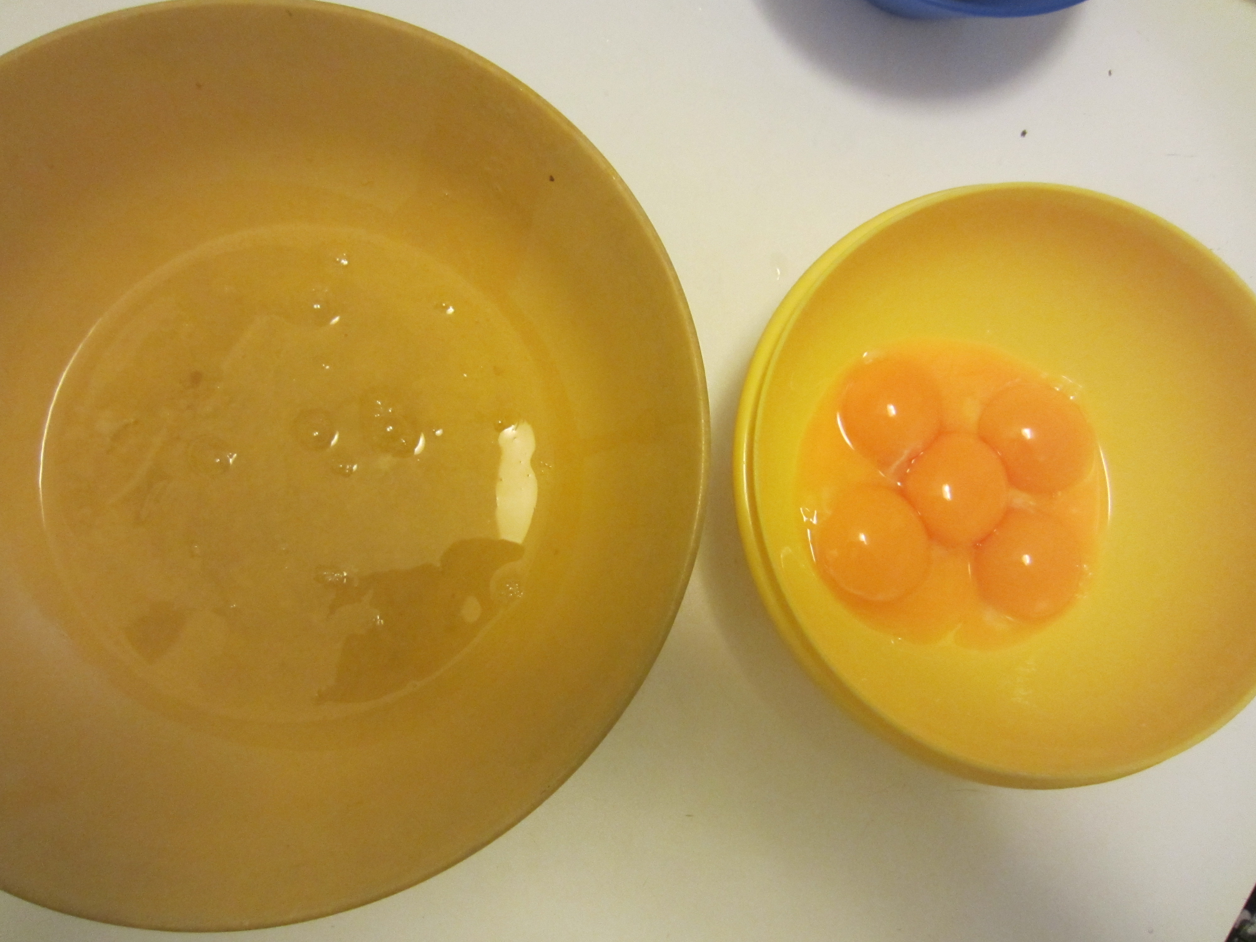 First of all, divide the egg yolks from the whites . And switch on the oven static at 180 degrees.