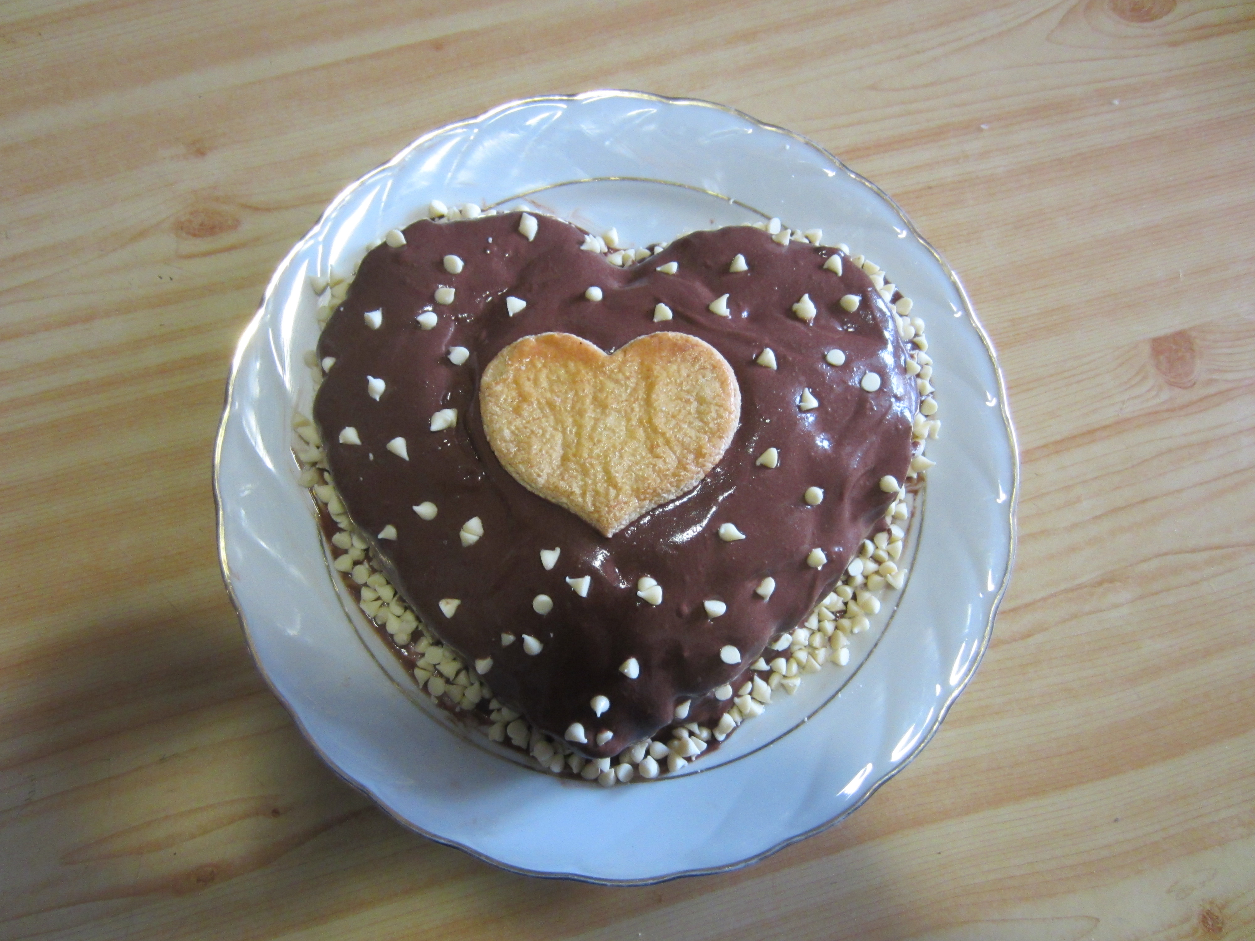 Cover your Daisy Cake with a layer of Nutella and decore it as you like _ Here you may see a hart shape Daisy Cake, decorated with Nutella and white chocolate beans..the result was nice and very good