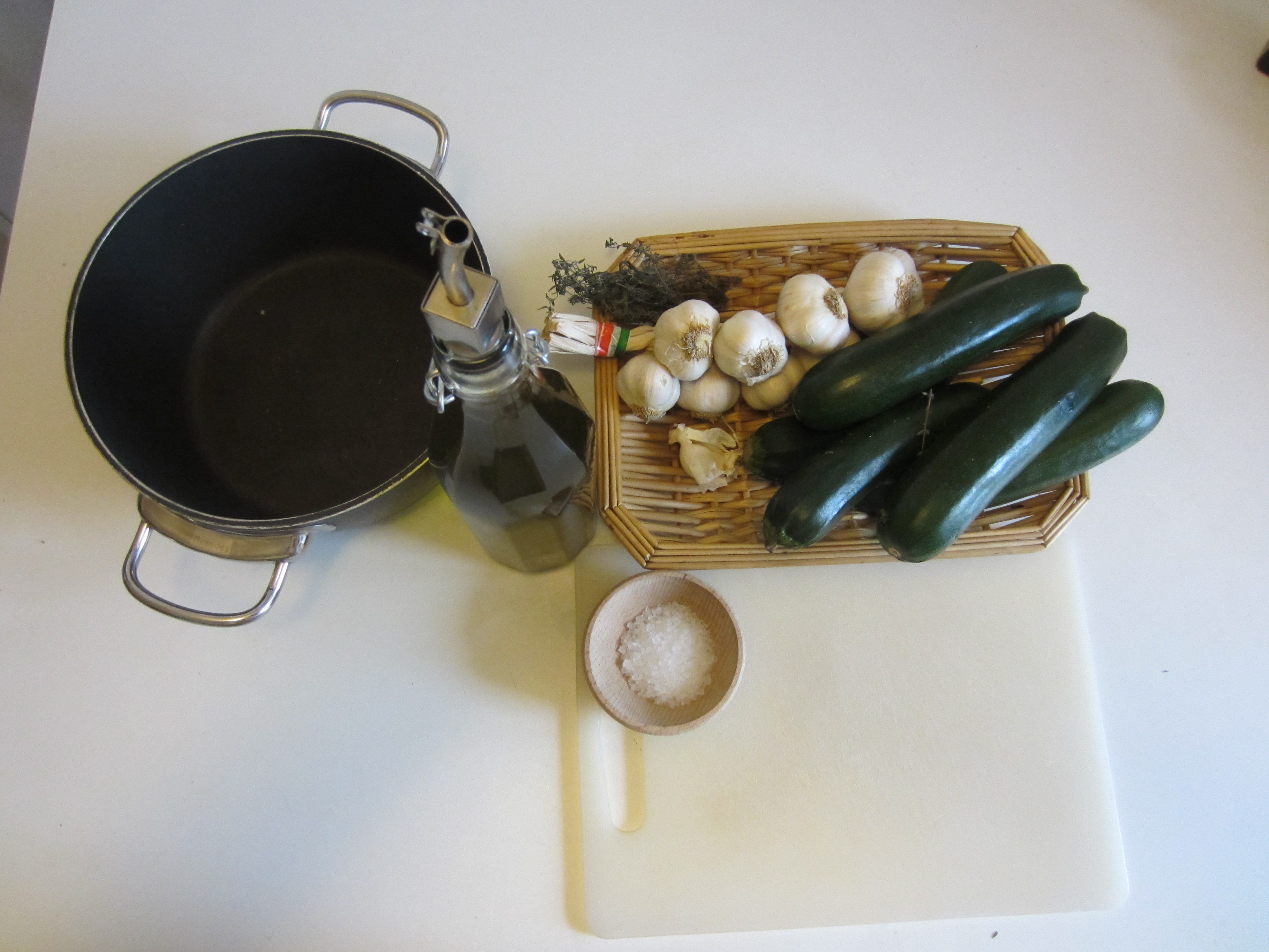 All you need are 300 grams of fresh and little zucchini, 1 or 2 cloves of garlic depending on your taste, 3 tablespoons of EVO oil (Extra Virgin Olive oil) for coocking and one more EVO oil tablespoon per person. To this you will add some fresh chopped fresh mint or parsley, again according to your personal tast – I love the great perfume of the fresh mint and the special flavour that gives to this soup.
