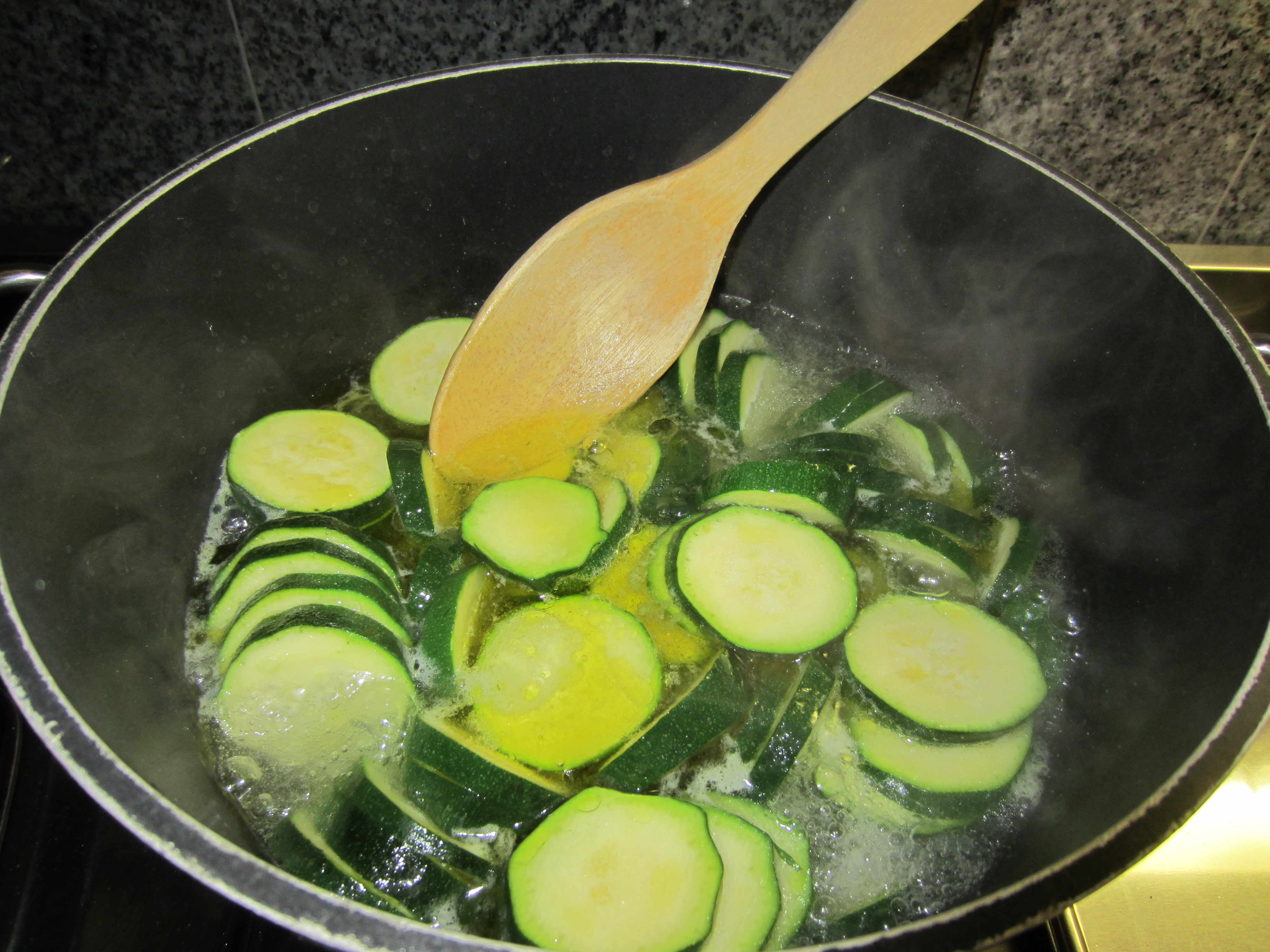 As soon as the water boils, remove the lid and cook until the zucchini are soft but not untrimmed (must maintain good consistency).