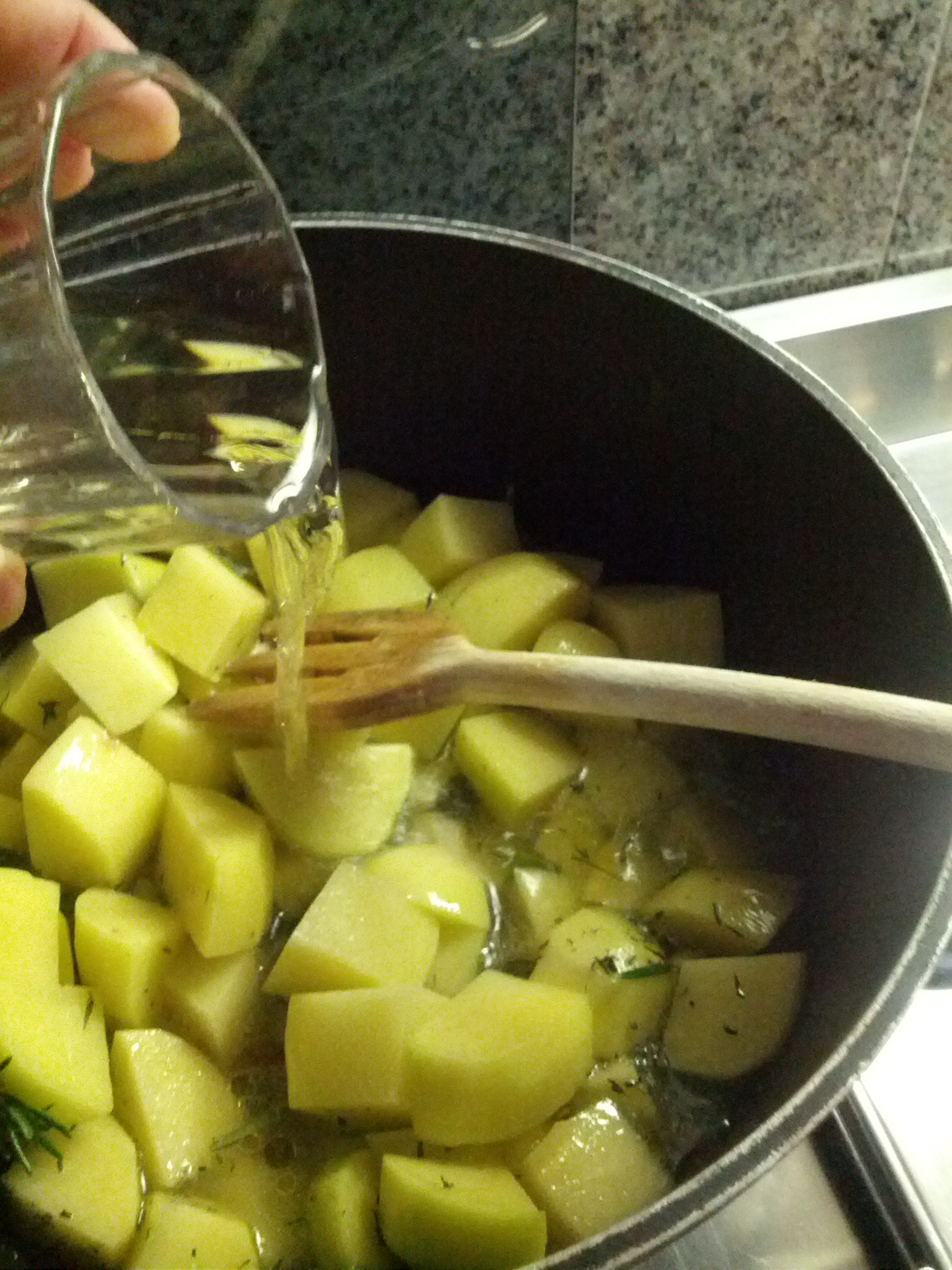 Potatoes in white wine and rosemary