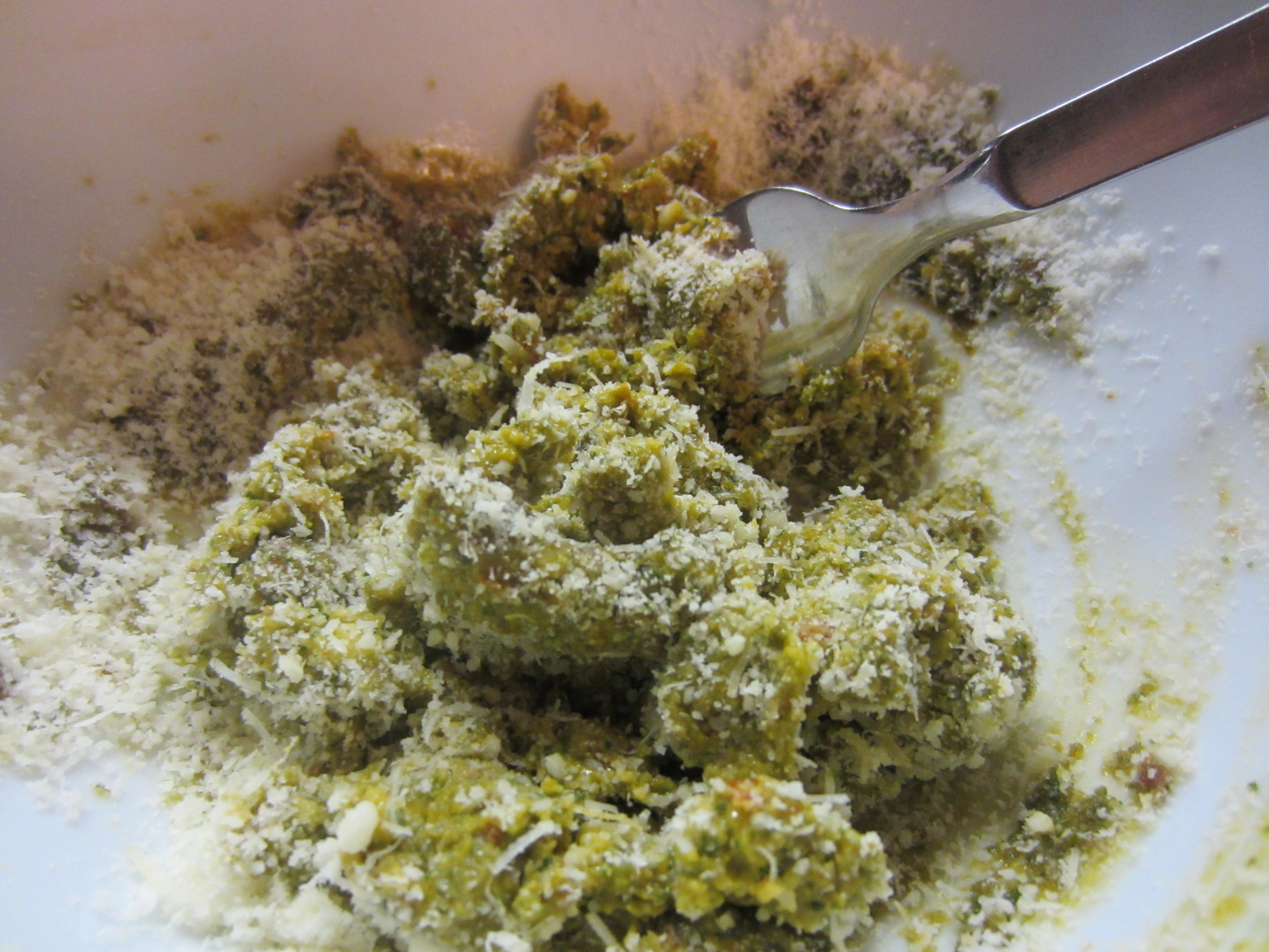 Once incorporated the Parmesan, add the cooking water which will make your pesto salt , warm, creamy and tasty .