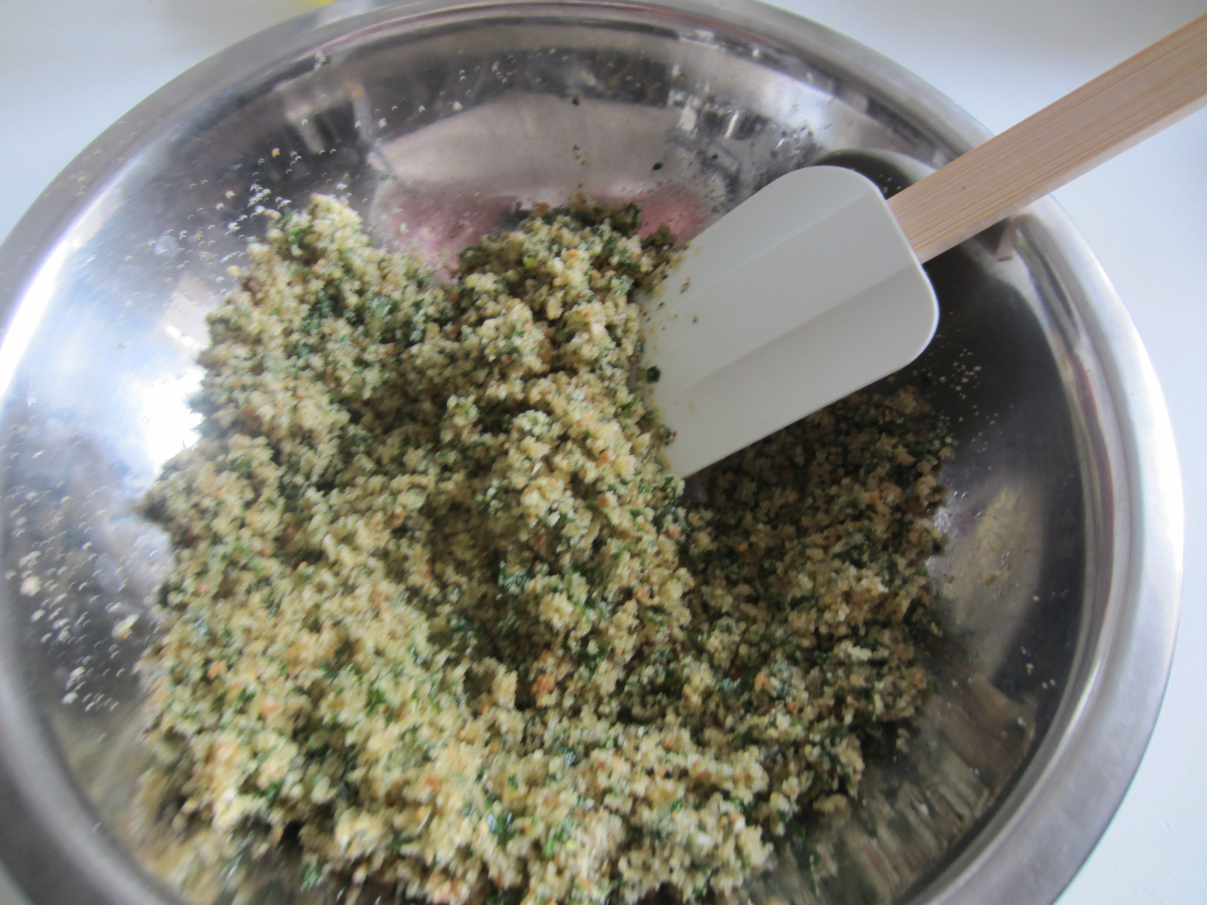 Put in a blender dry bread , parsley , garlic and oregano and finely chop everything.