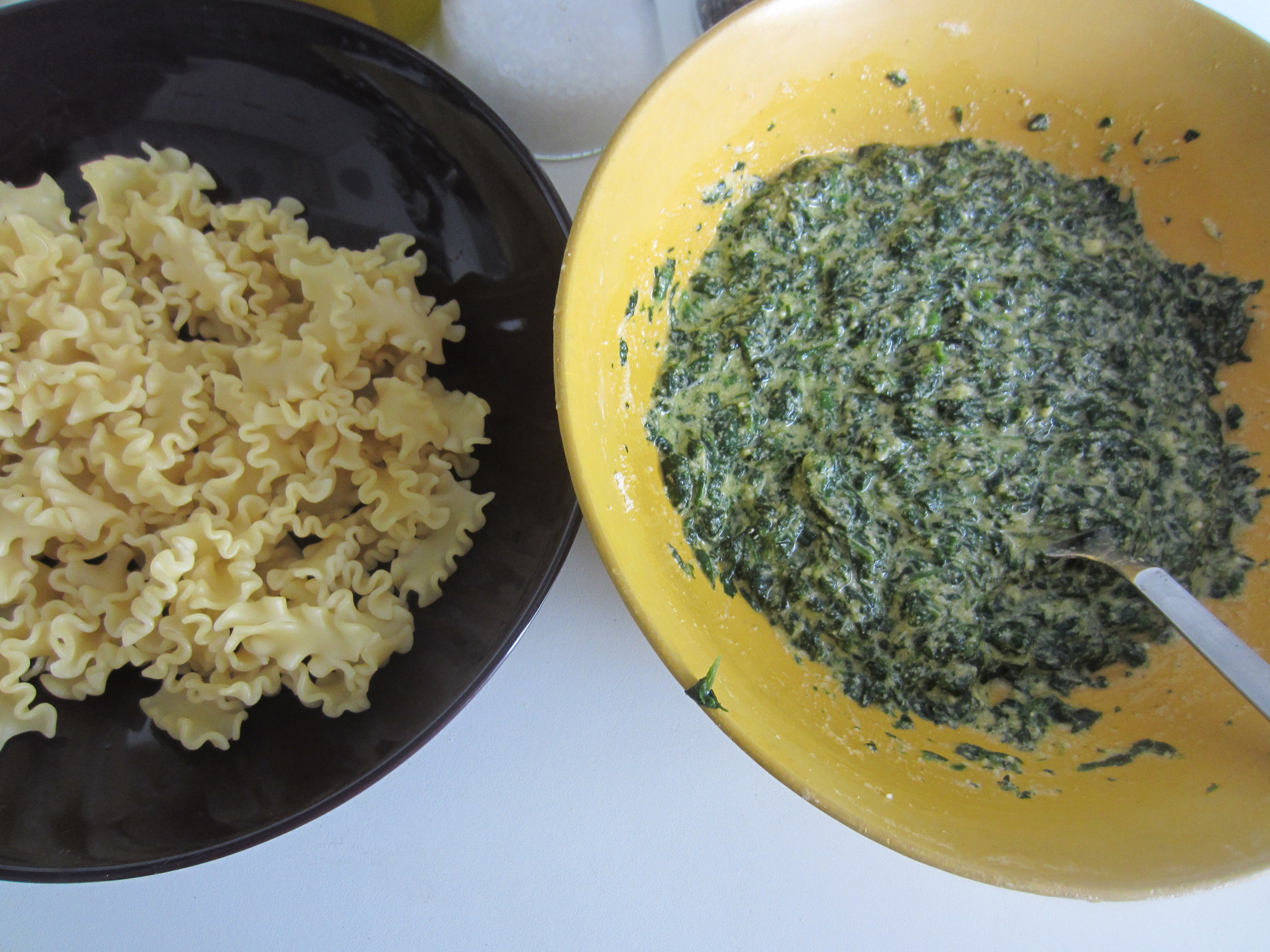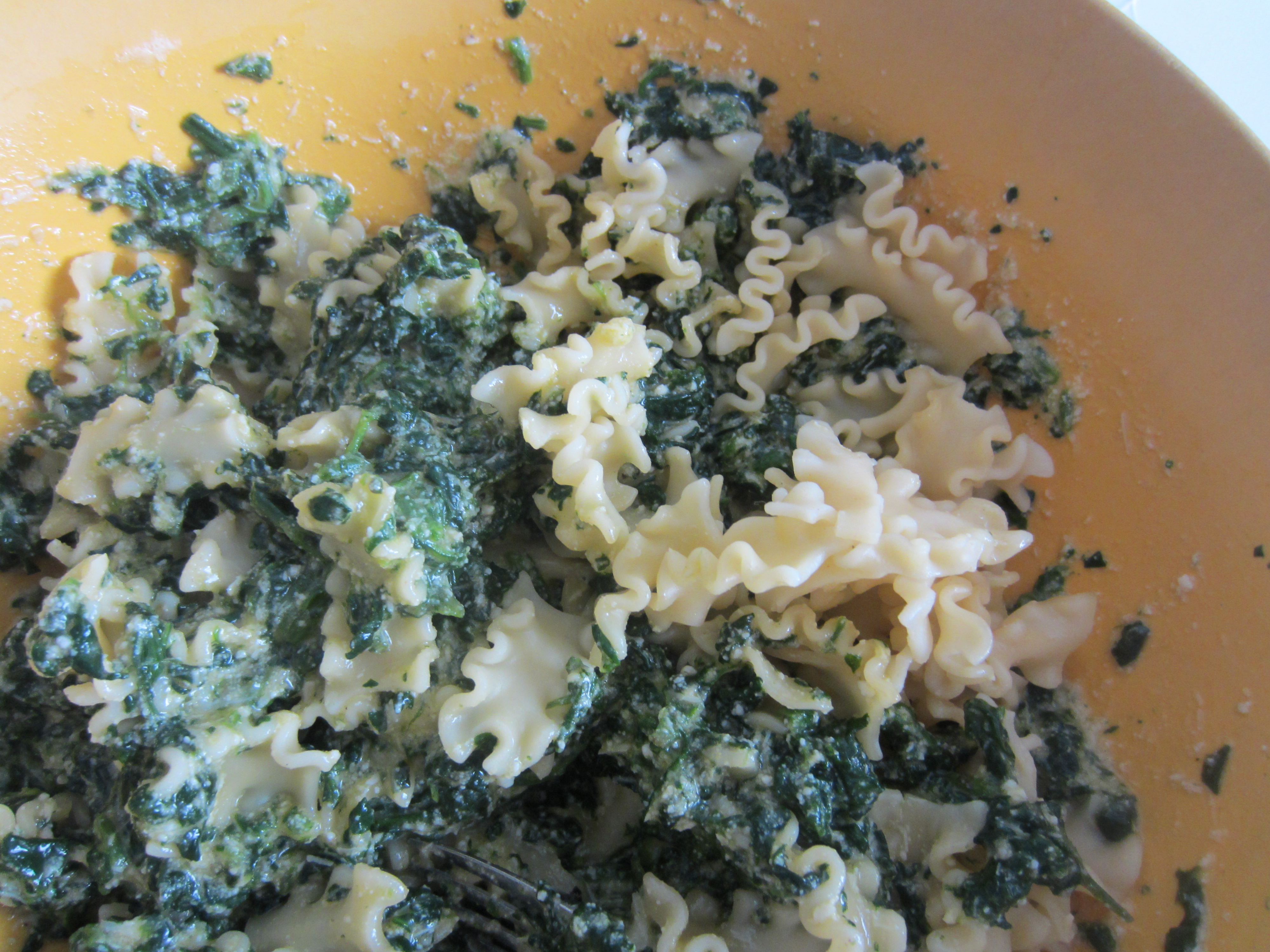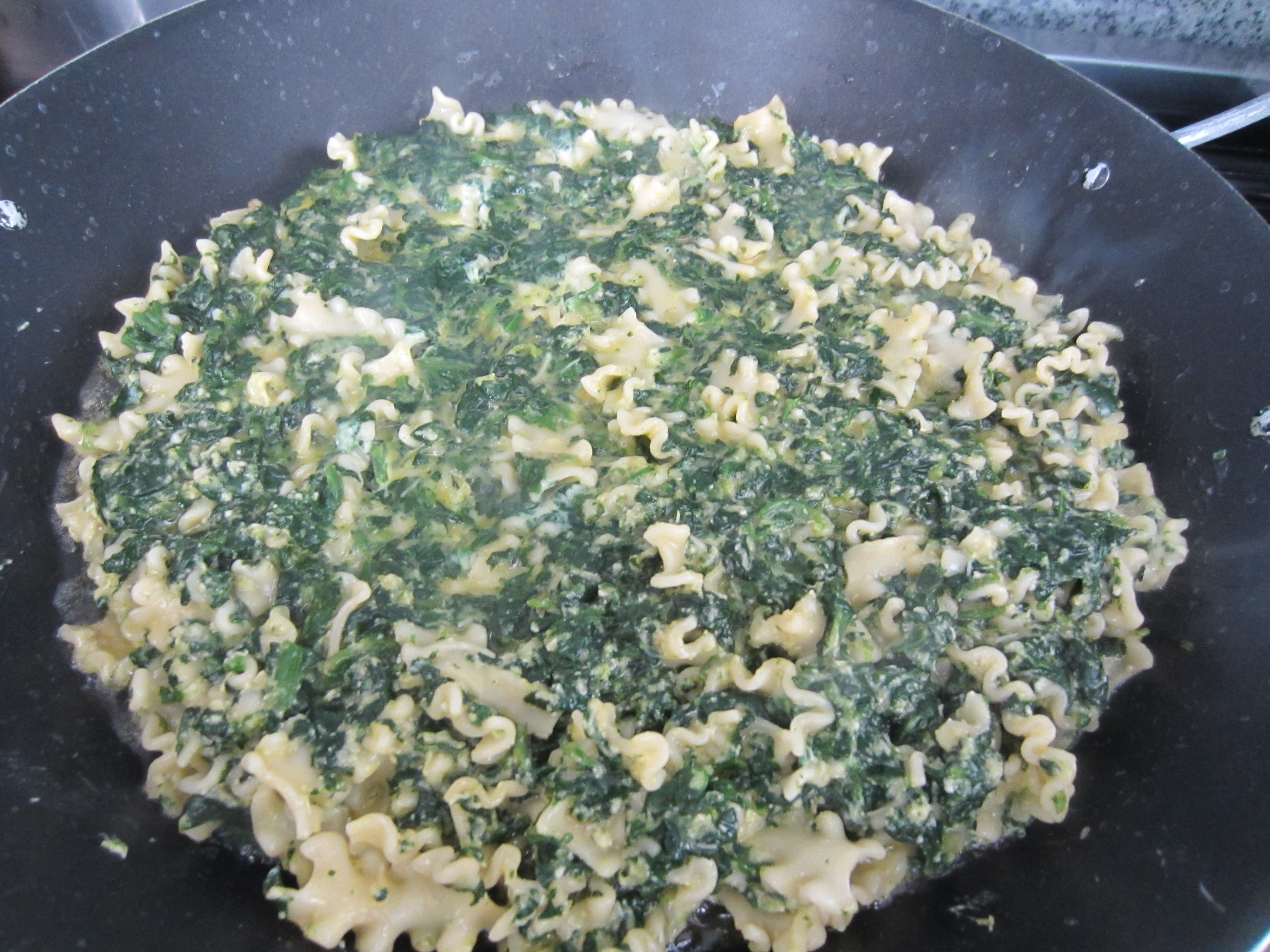 Here it is used : 1 serving of pasta salad , 4 eggs, a serving of cooked vegetables coarsely chopped (I used spinach) 3 tablespoons extra virgin olive oil , 5 or 6 tablespoons of grated Parmesan cheese . salt, pepper and some grated ginger.