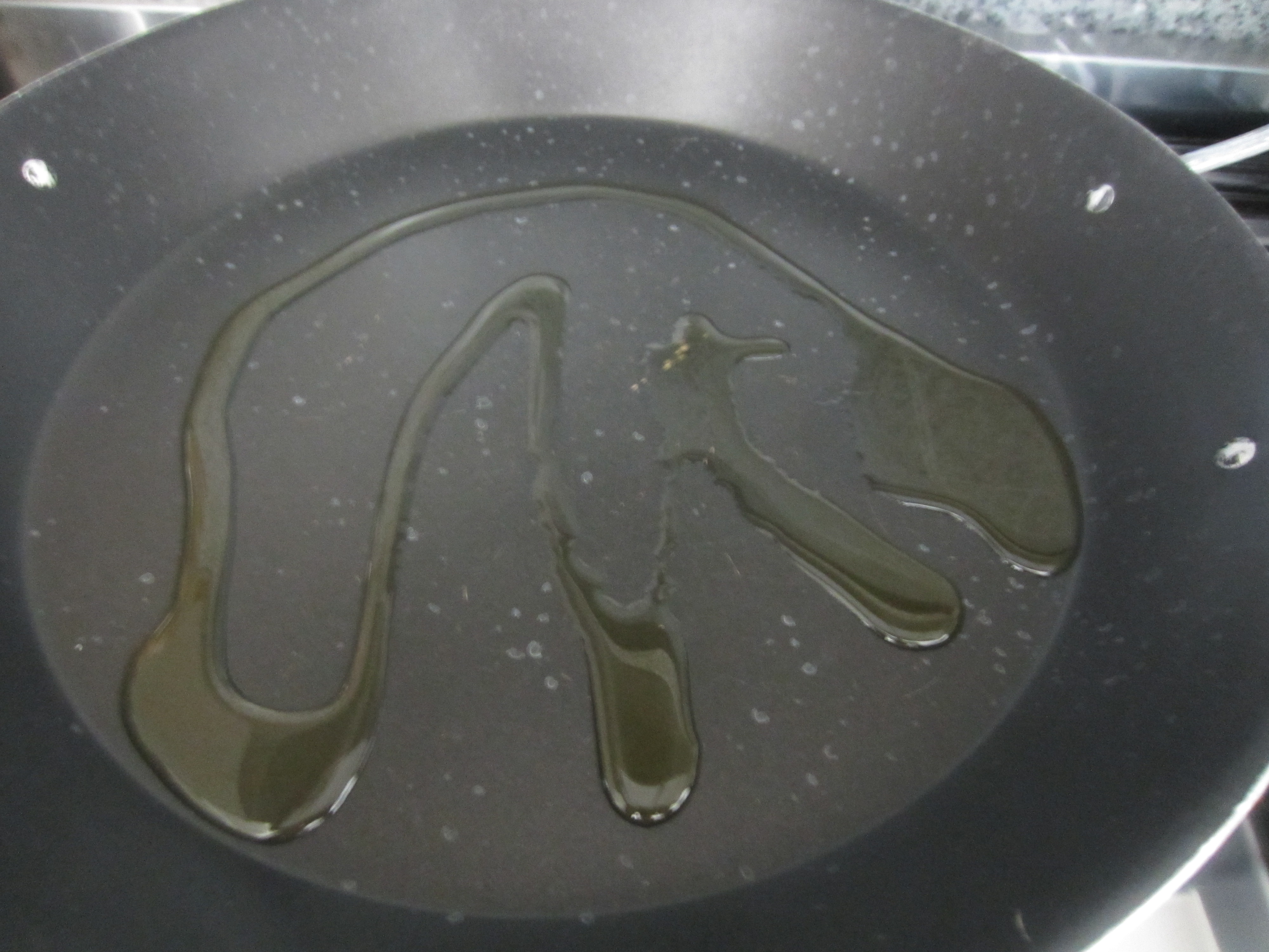 In a large nonstick skillet put the 4 tablespoons of oil and heat over medium heat.