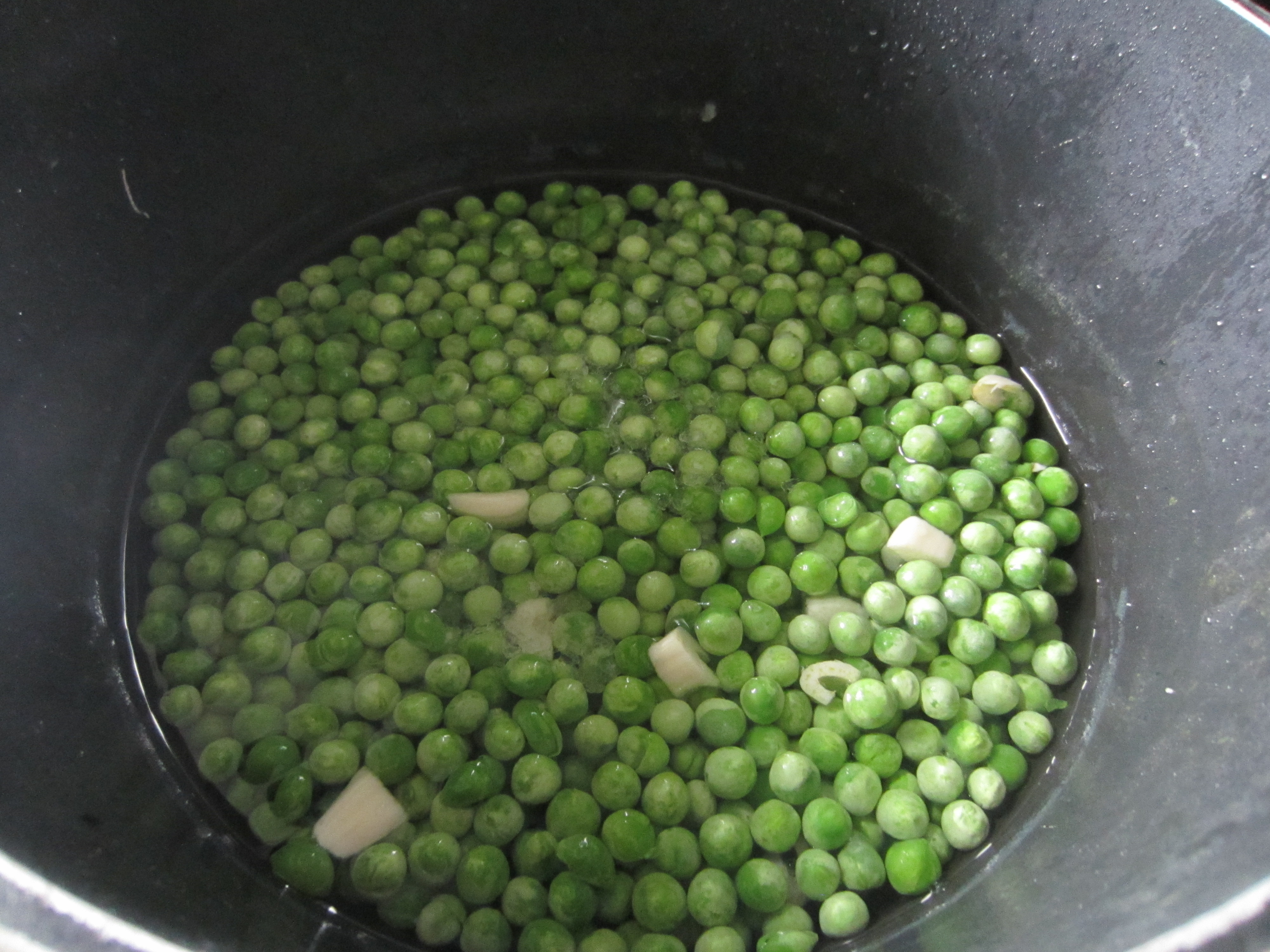 First place in a pot with cold peas, a clove of minced garlic, salt to taste, and cover with accqua the limit of peas as you may see in the pic. The water should be little, if you can add a little ‘cooking durations, because the peas will wither until the water is almost completely absorbed, and will not get drained, to keep all the taste (overalls and vitamins) in final dish. Cook for 30/40 minutes on low heat until the peas get soft and a light sauce.