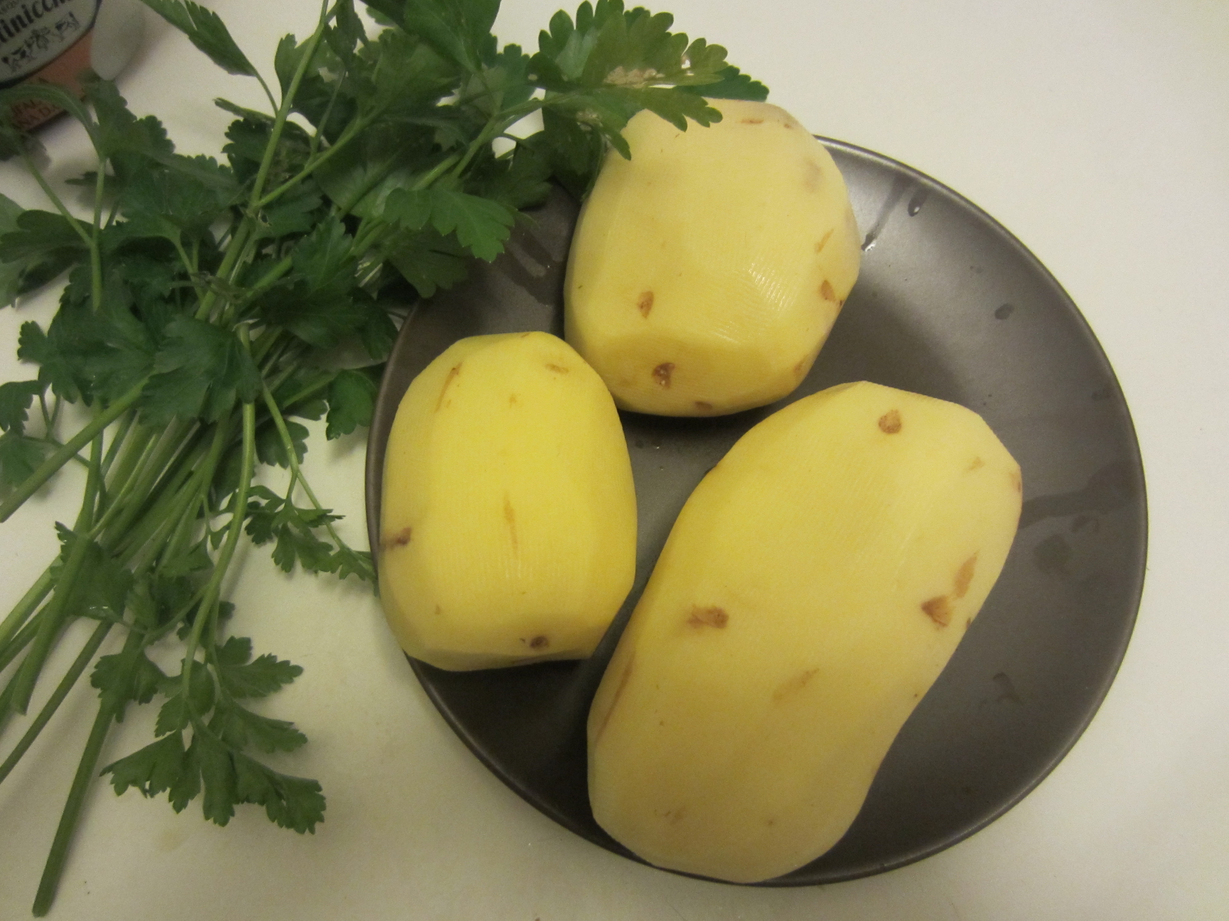 Peel the potatoes and cut in pieces.