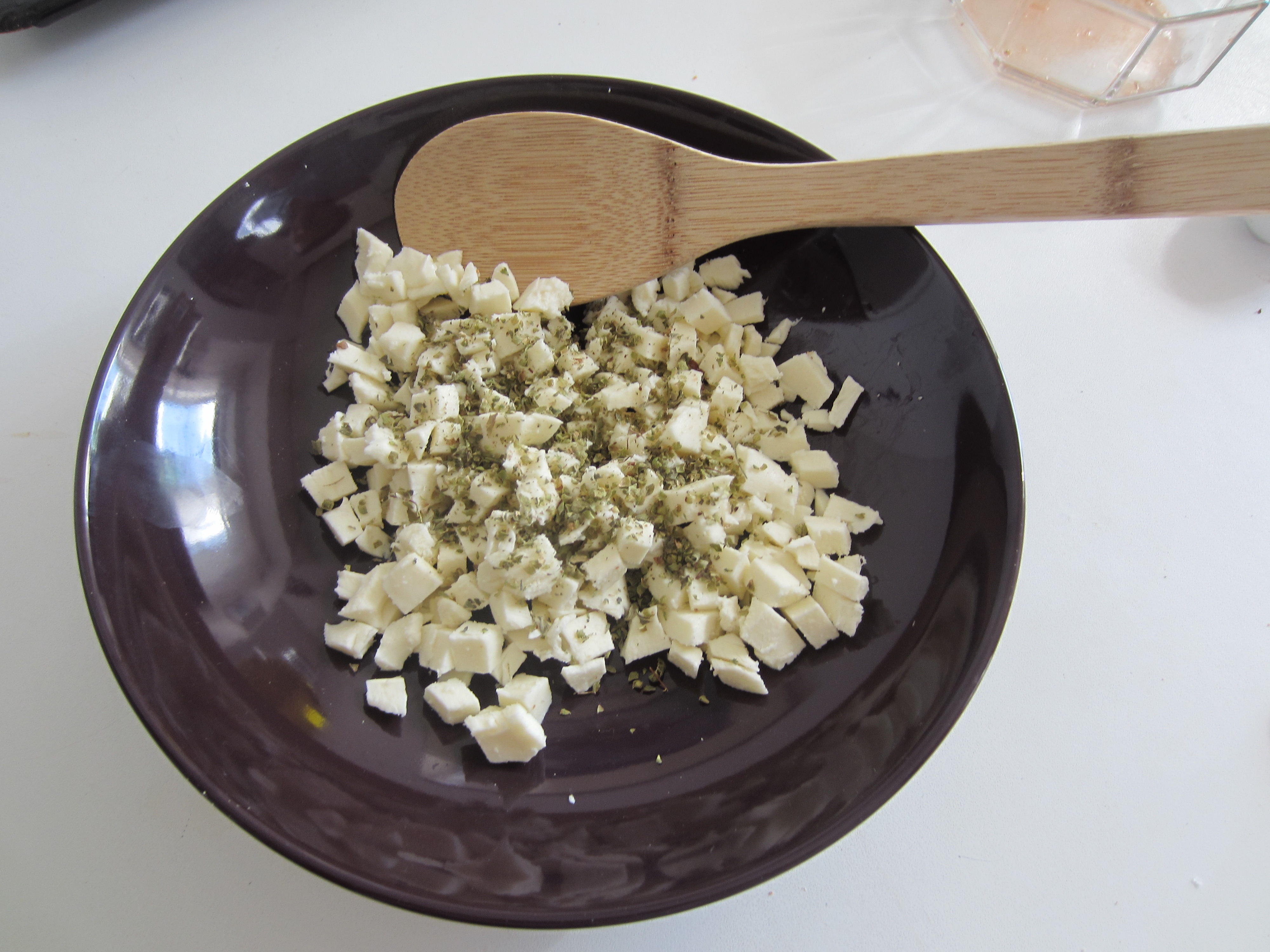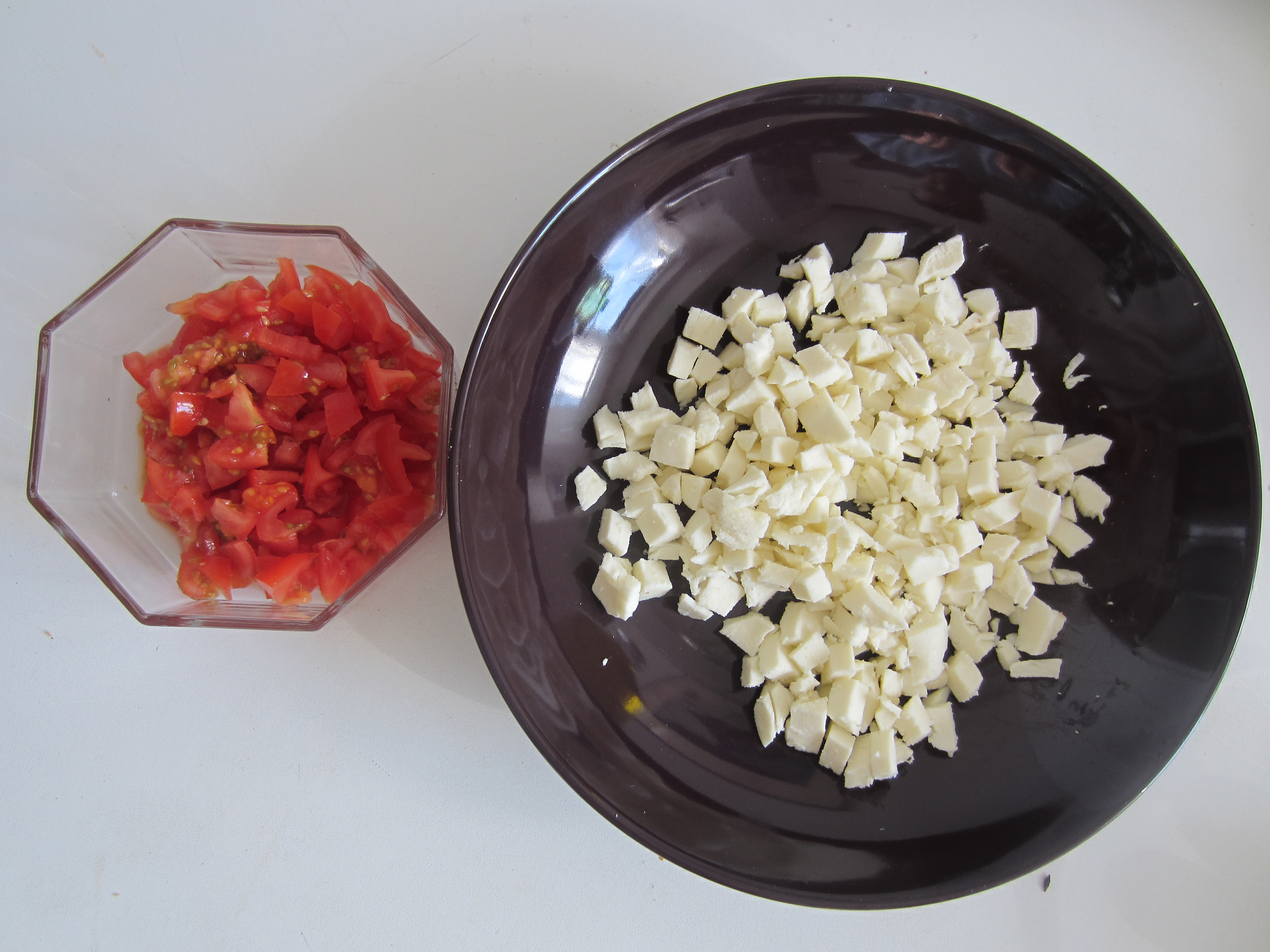 Dice the mozzarella well-drained, if you find it, the best is mozzarella for pizza.
