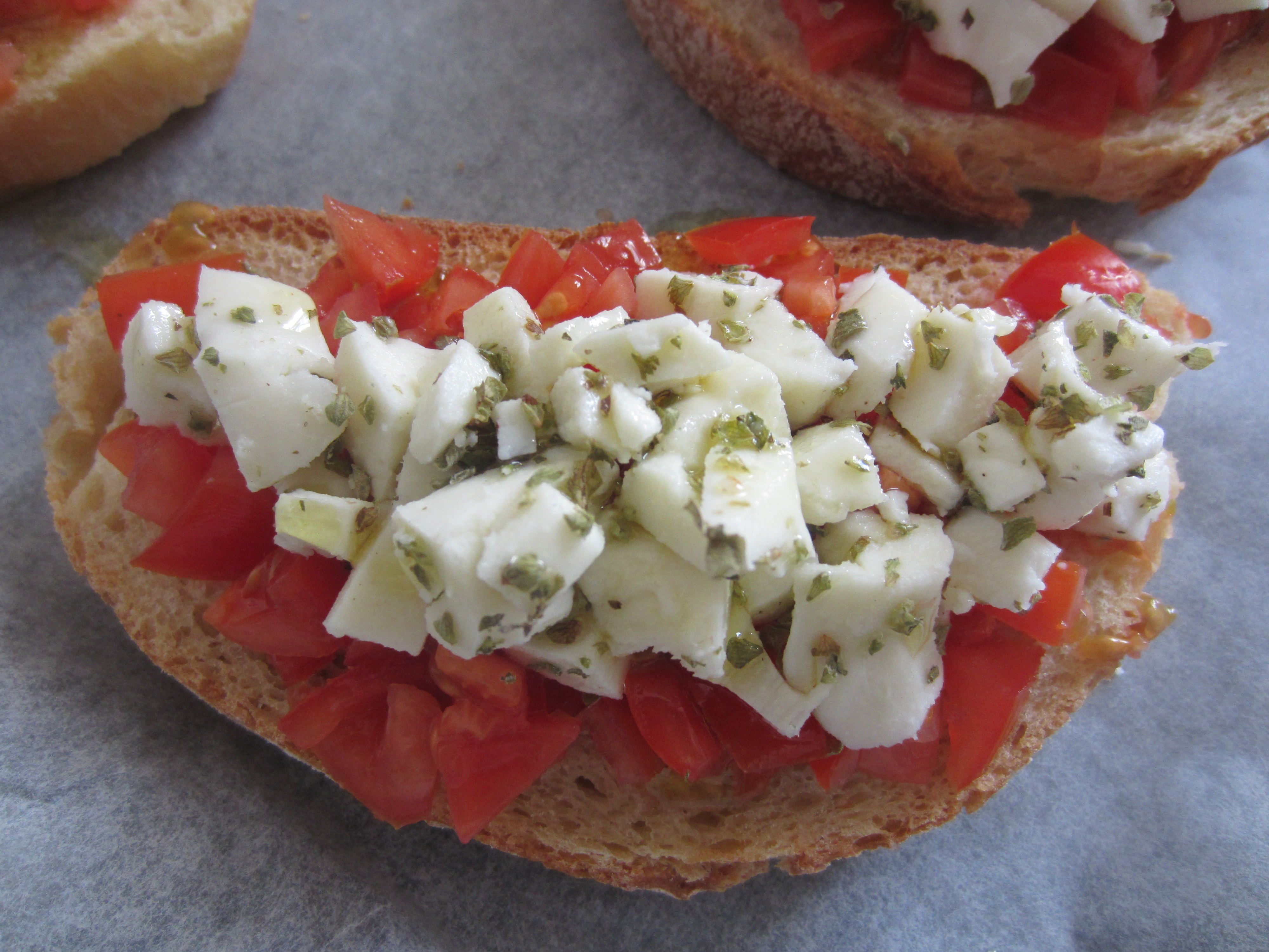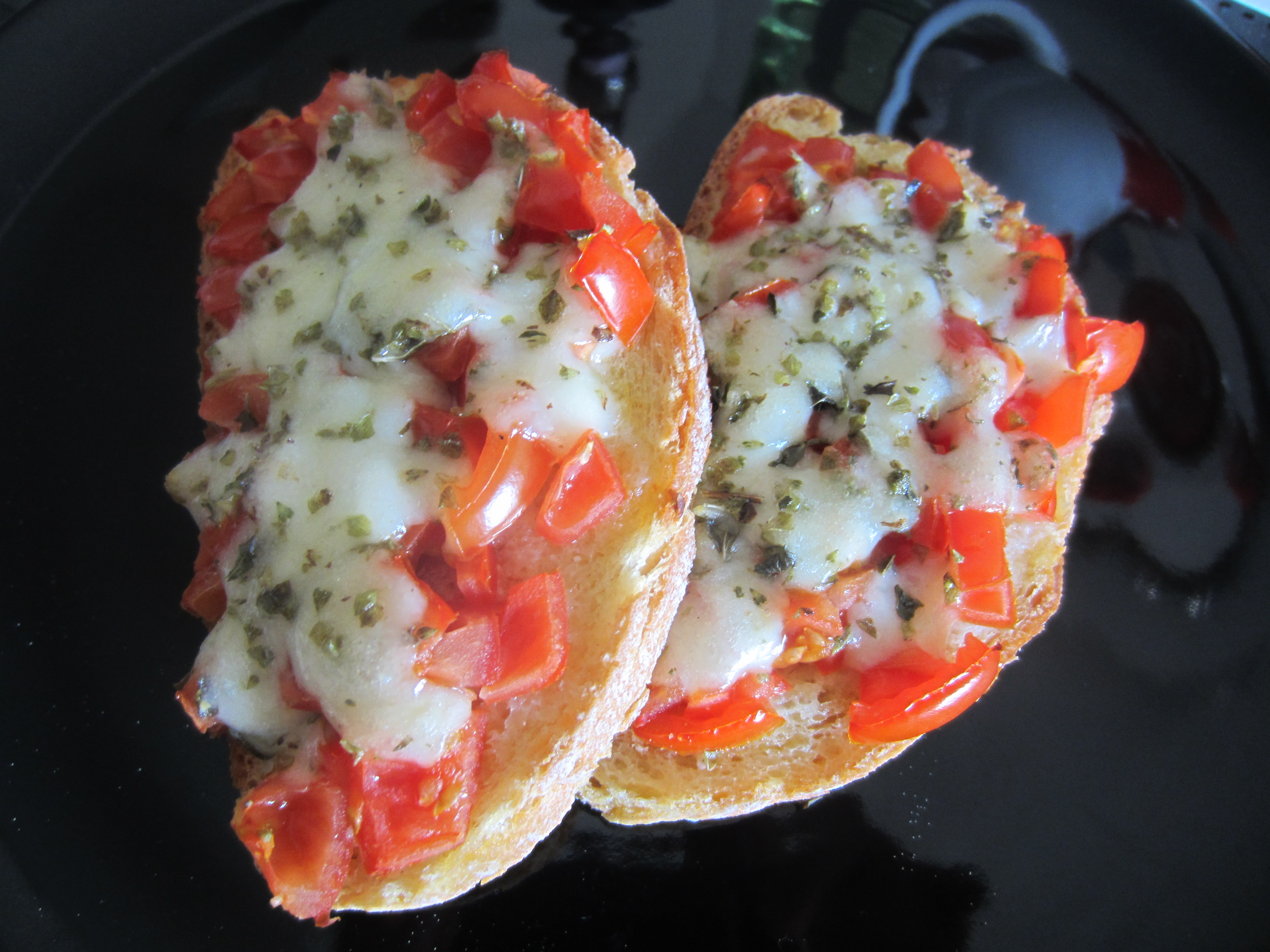 It is basically cheese and tomato on bread with oregano lol,but it does taste nice….I spread green pesto on the bread with tomato and Mozzy cheese yummy