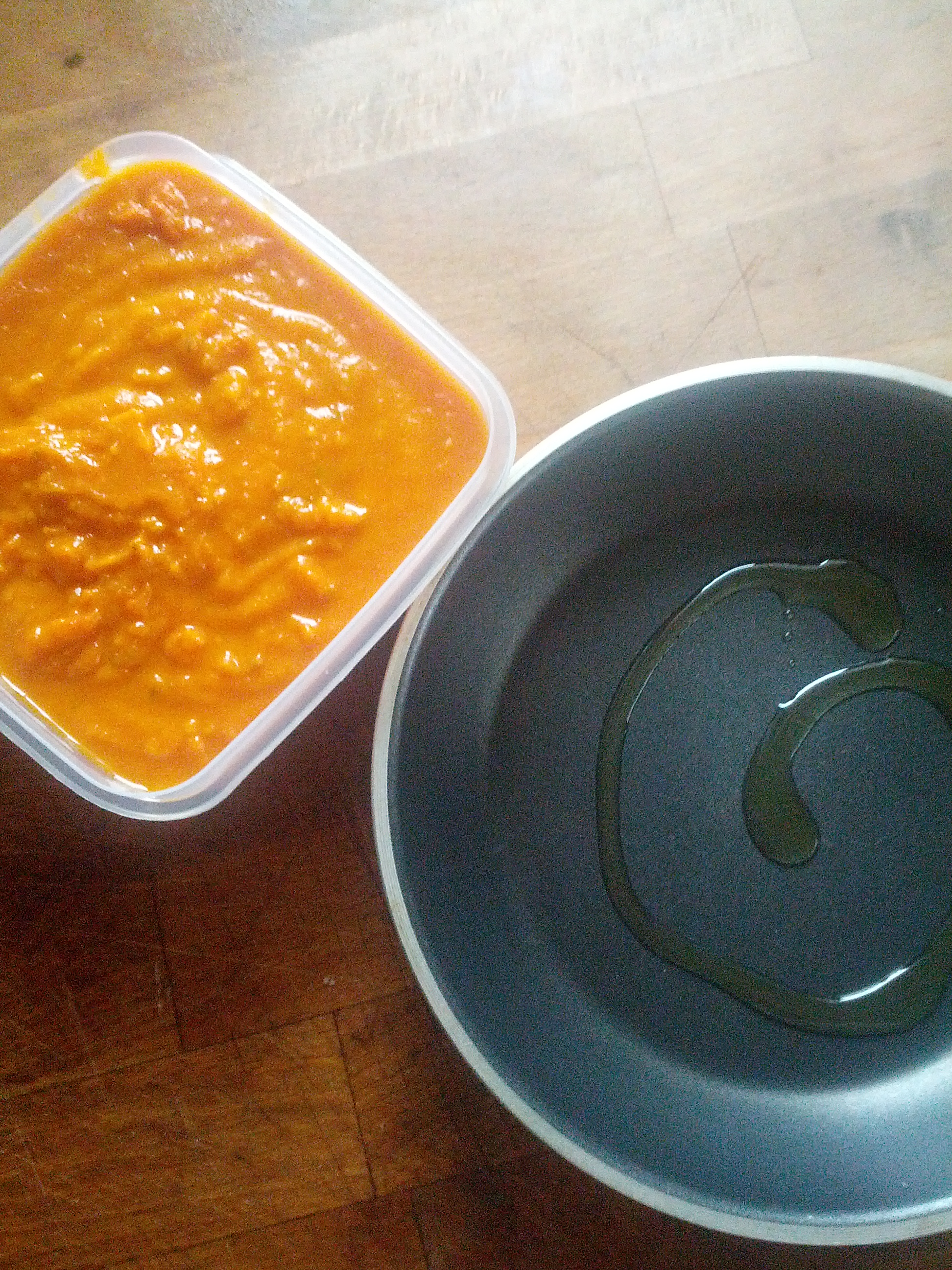 In the mean time put a little extra virgin oil in a pan, and add the passata.