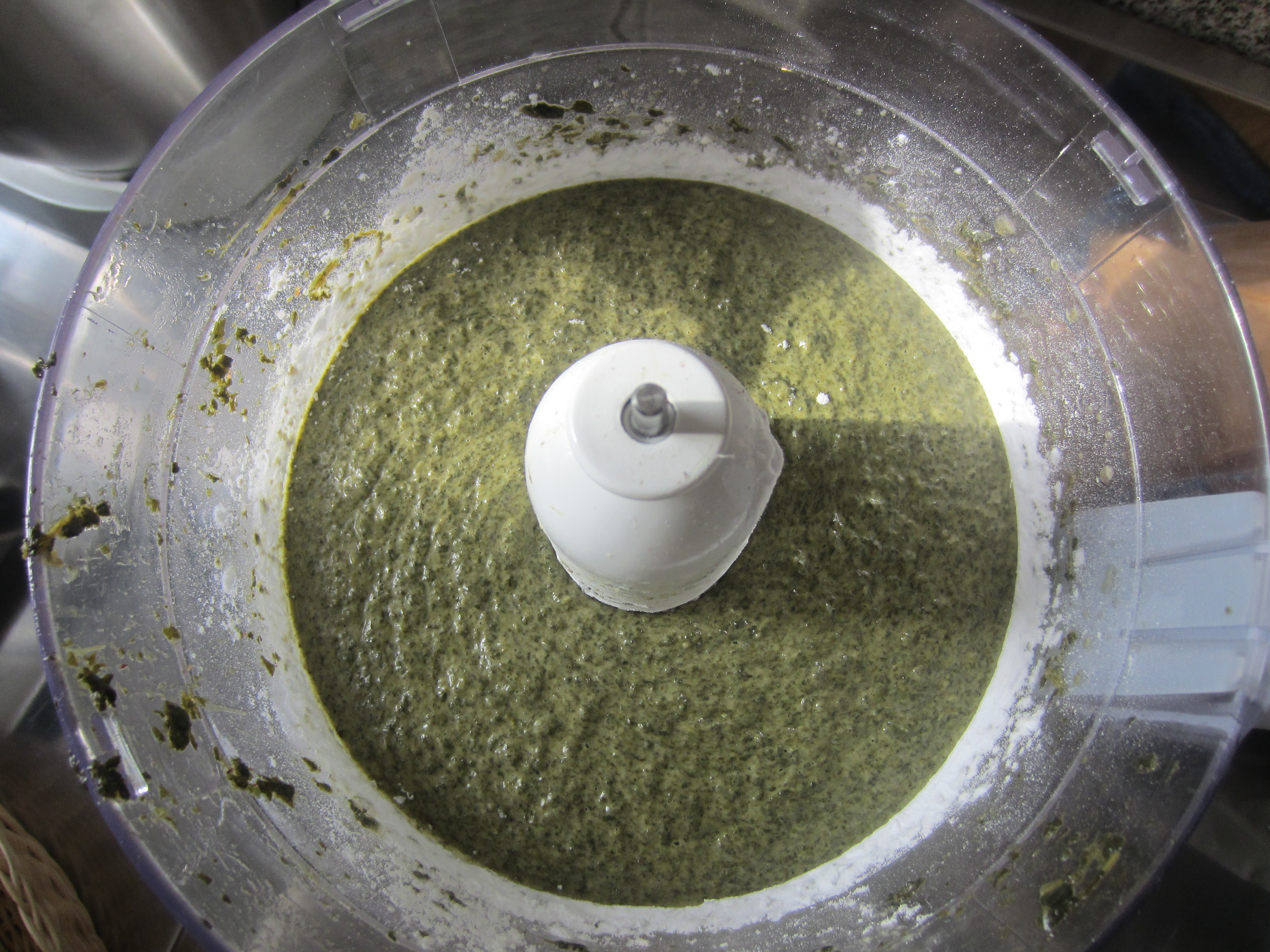 Now add to the spinach mixture. always mixing with the mixet at low speed, little by little, the sifted flour and the potato flour, until all will be well mixed