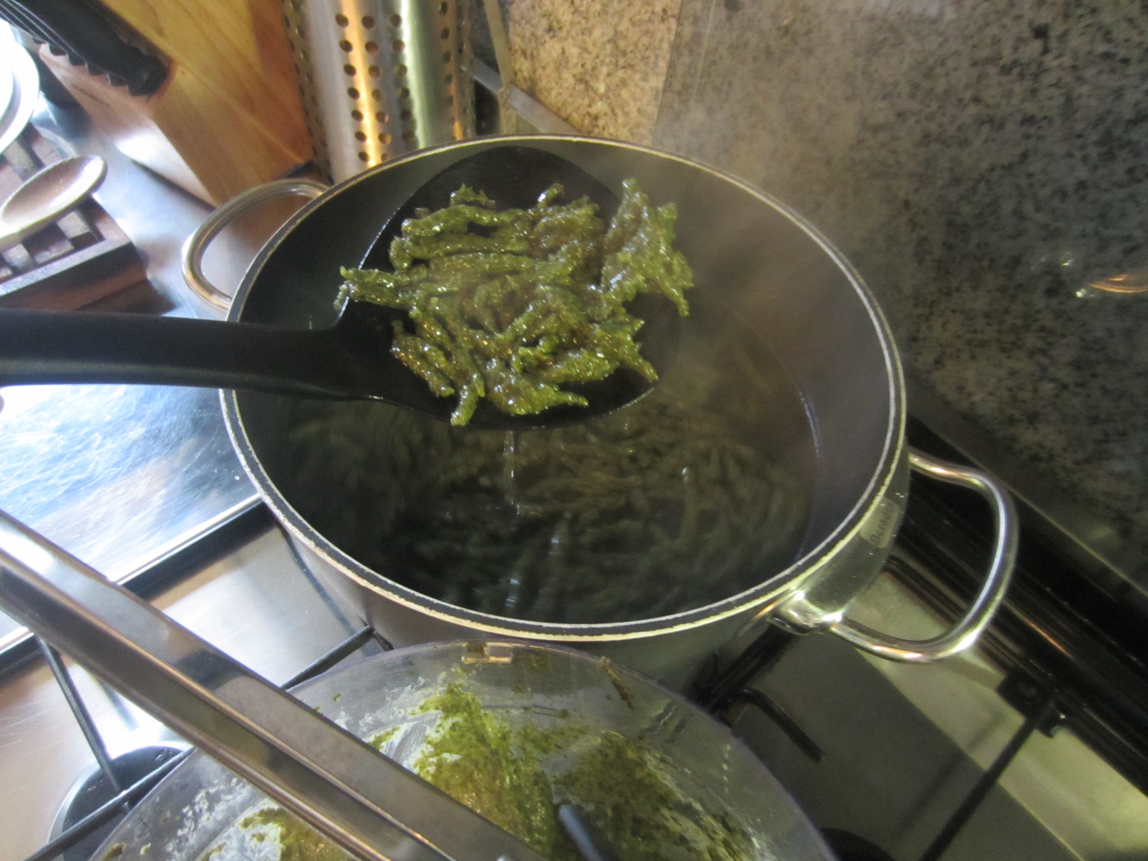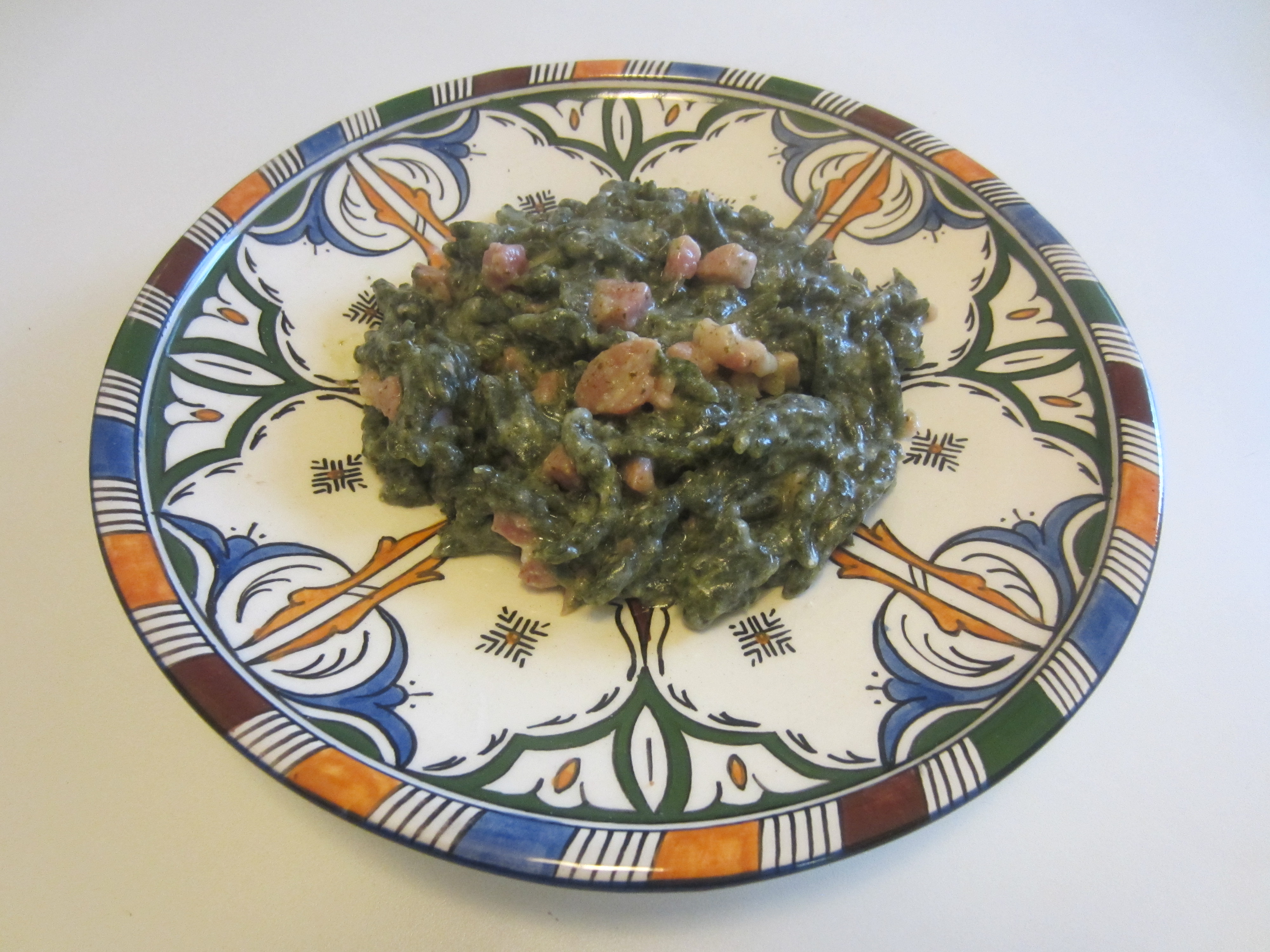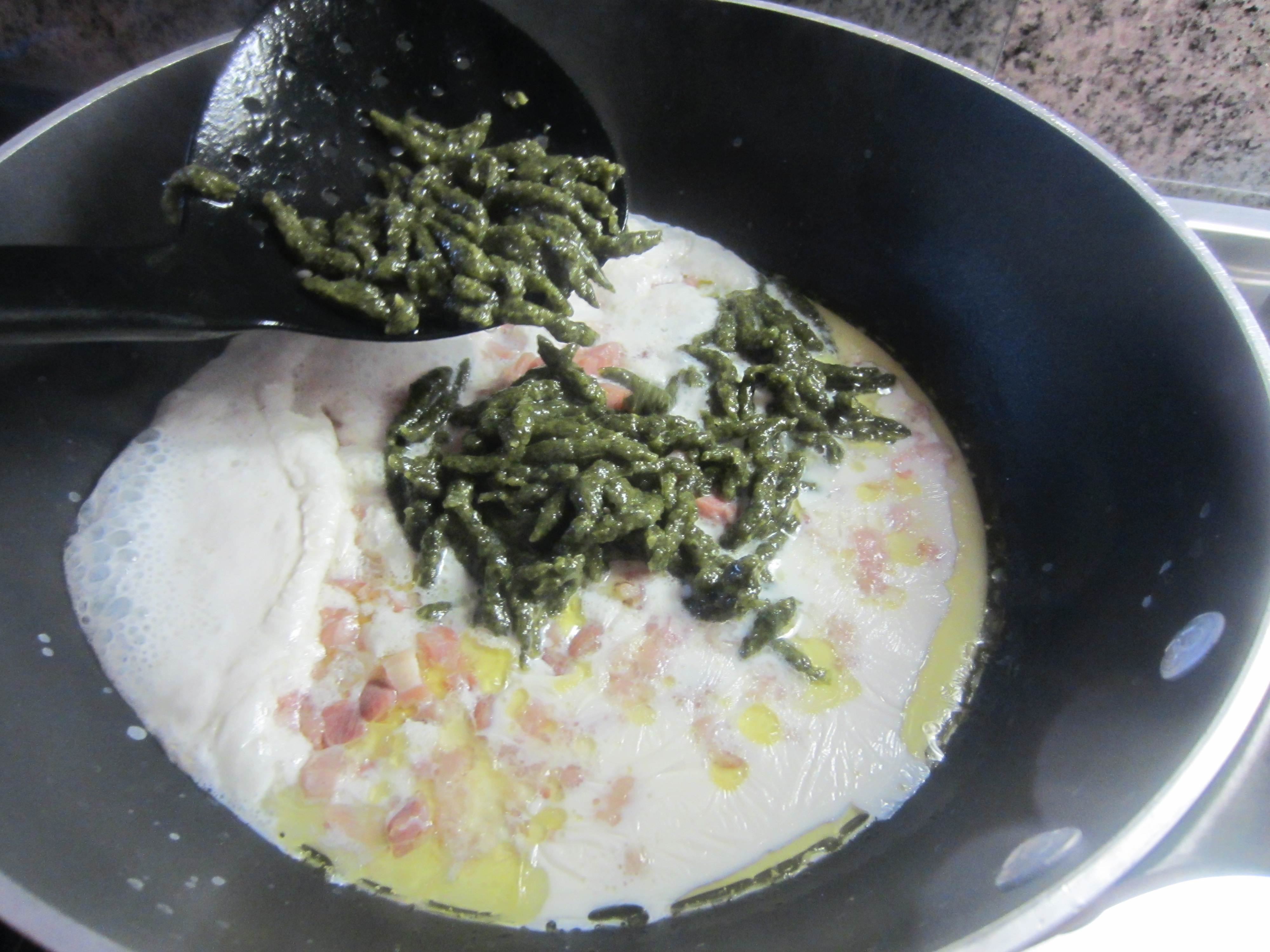Little green Spinach Gnocchi with Pancetta: Spatzle from Tyrol, North Italy