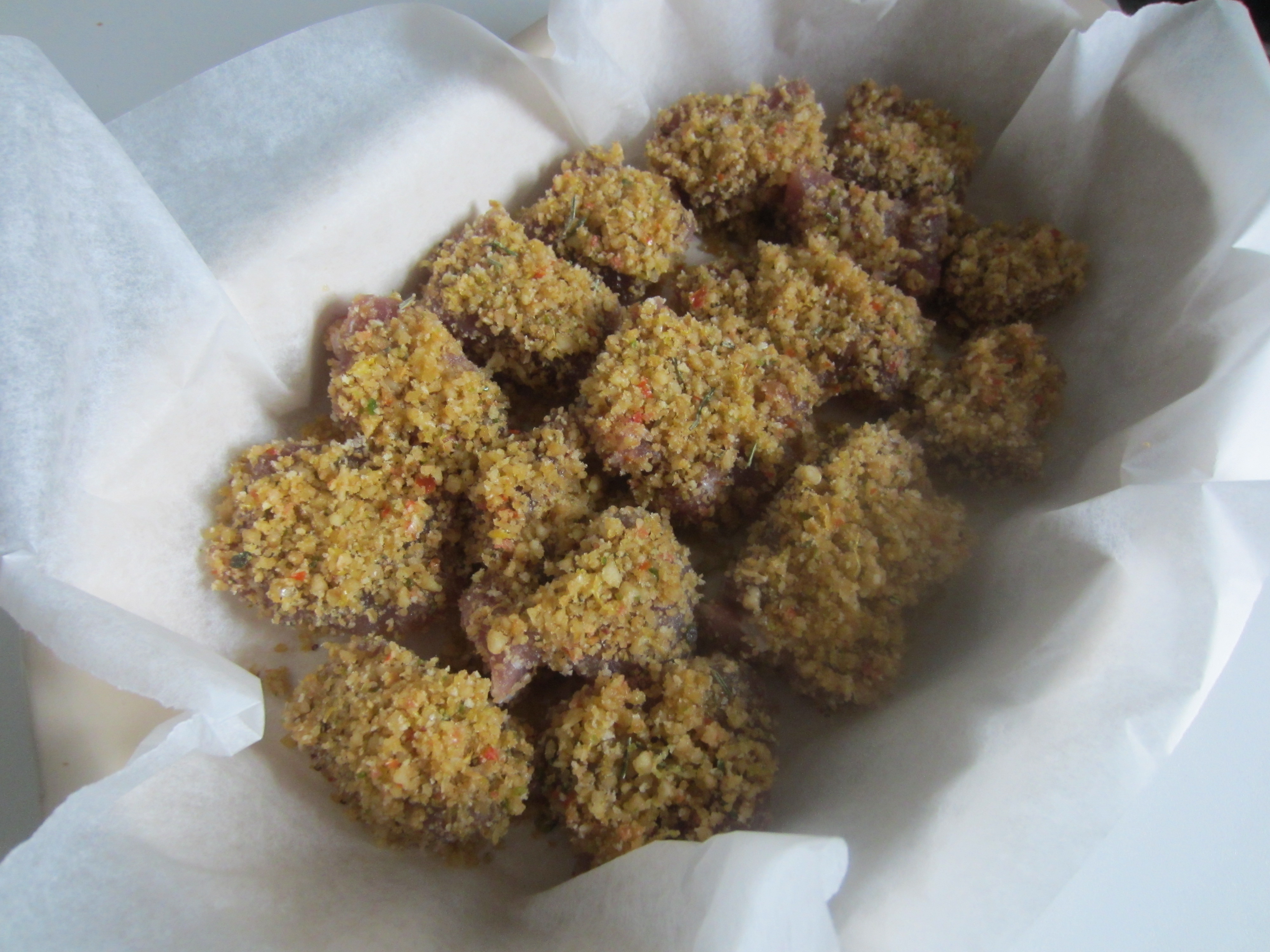 BAKED TUNA BITES IN CRUST WITH ALMOND , PISTACHIO NUTS , PINE NUTS AND WALNUTS