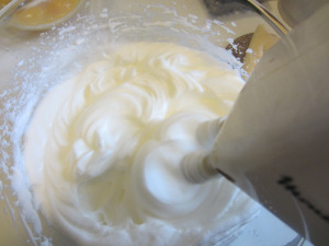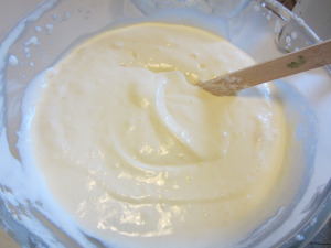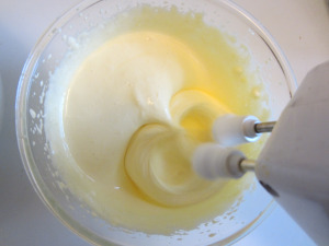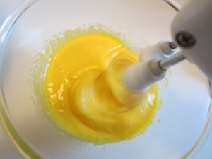 Now whip the egg yolks with the sugar, and when they are clear and soft , add the mascarpone cheese.