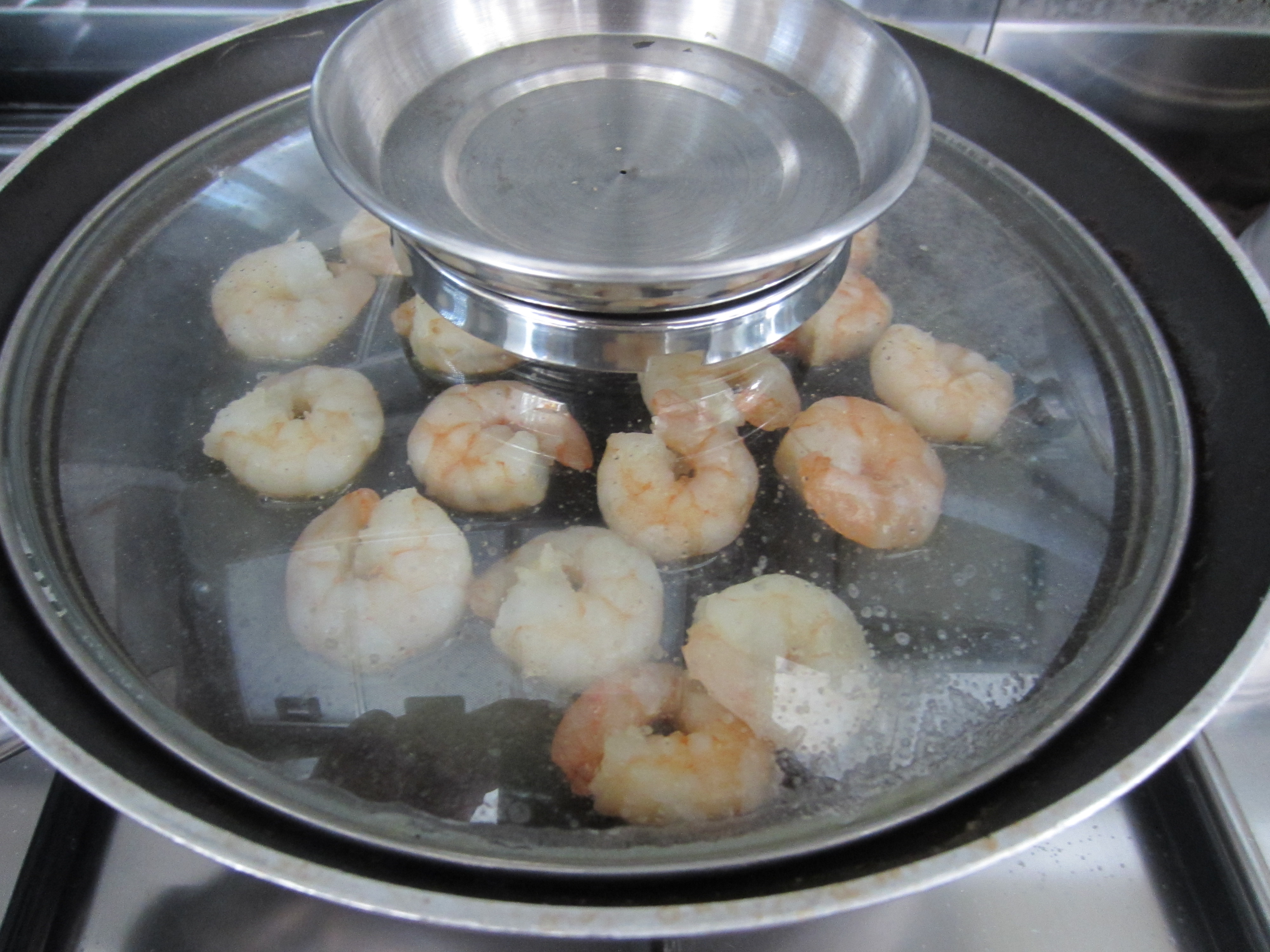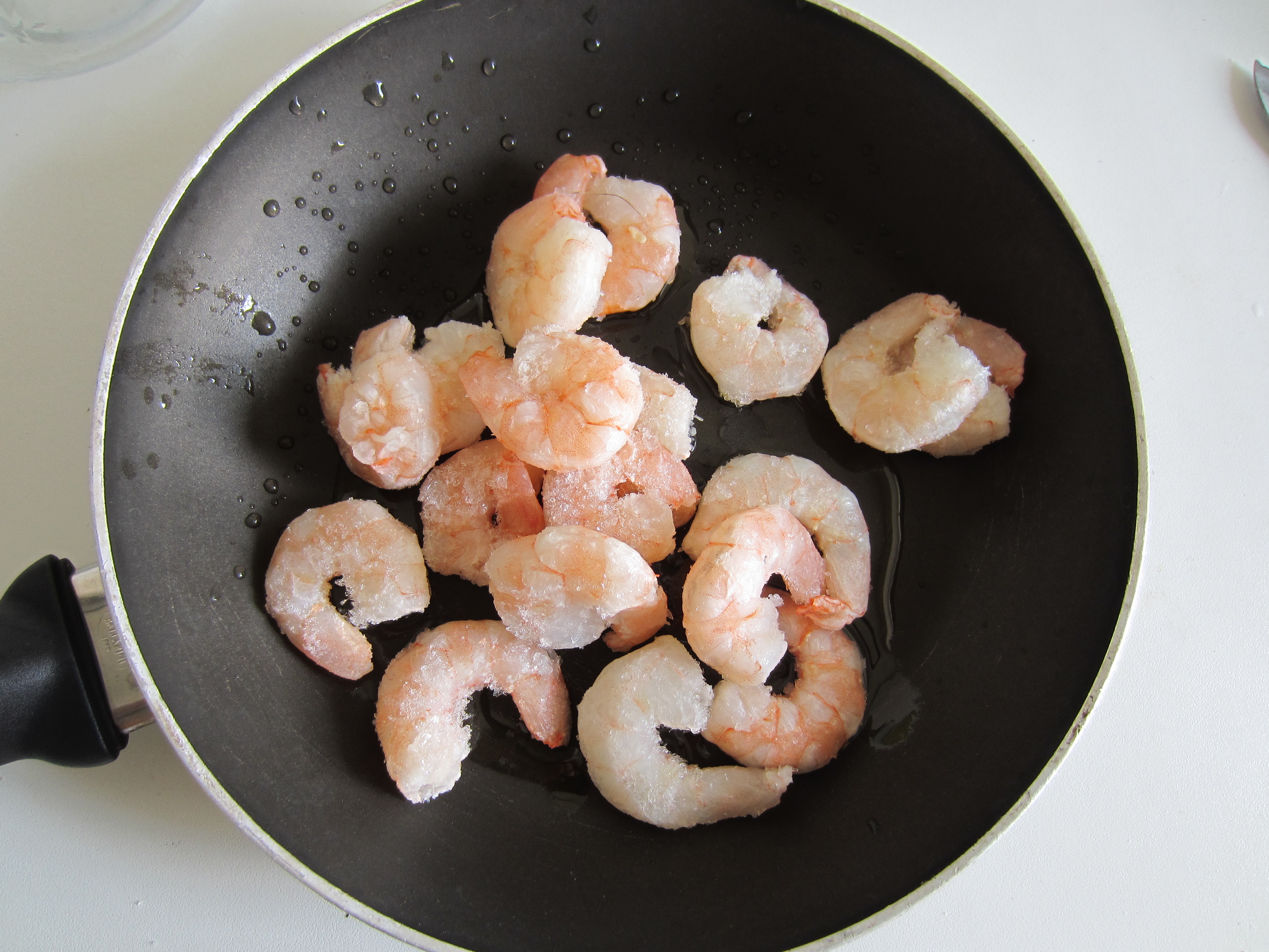 In a pan put 3 tablespoons of olive oil and brown the shrimp.