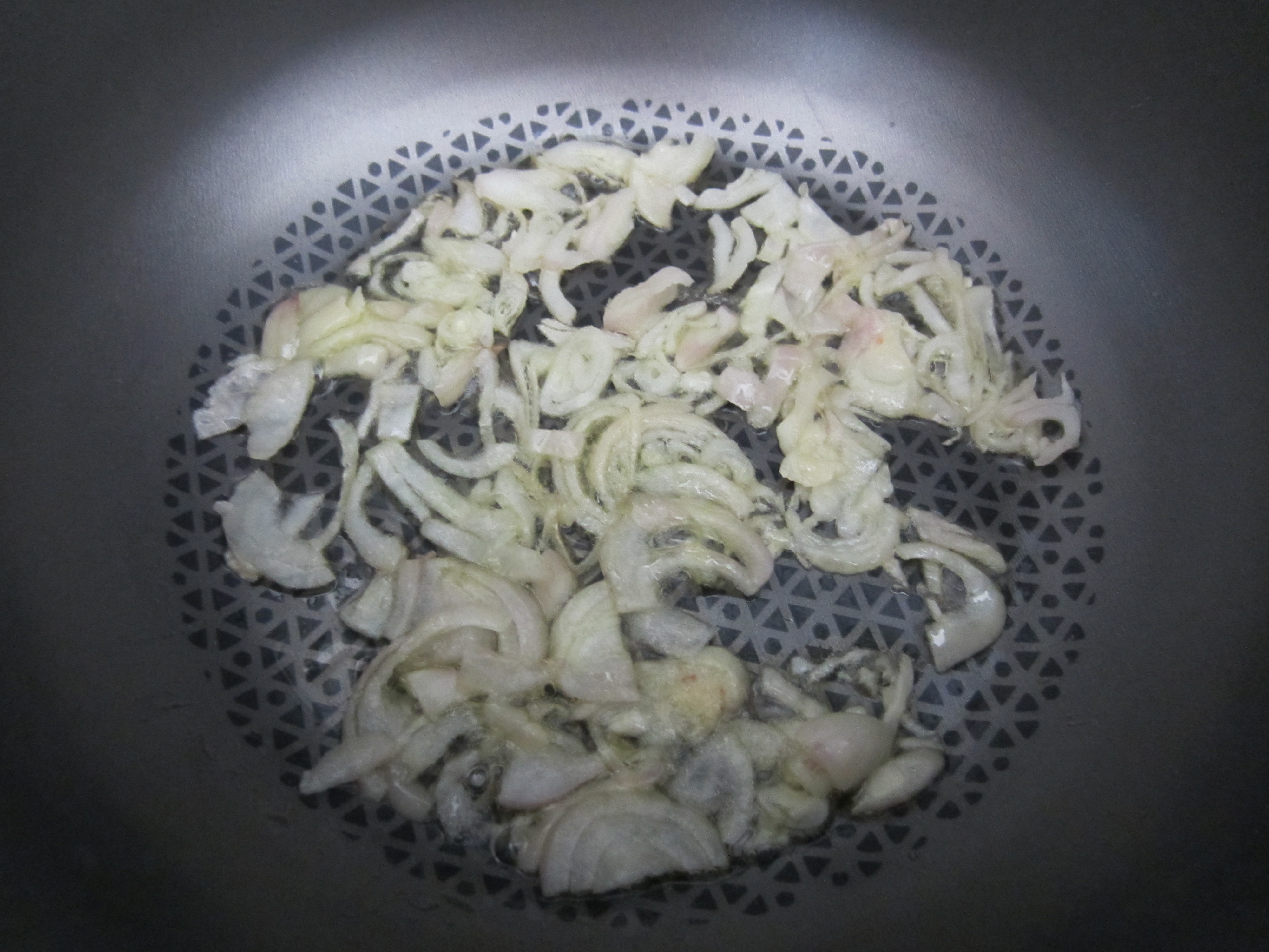 In a nonstick pan medium size put 3 tablespoons of olive oil and the chopped shallot, and let it cook on low heat.