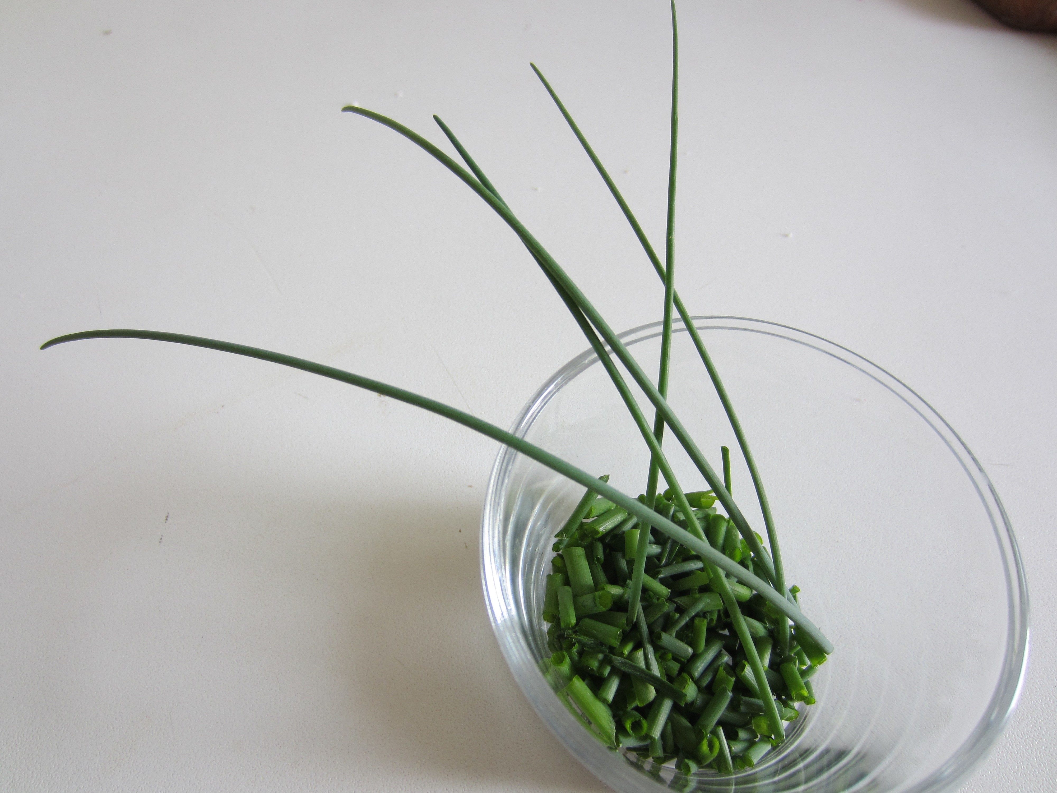 Chop the chives , by saving some wires that you will need to decorate the plate.