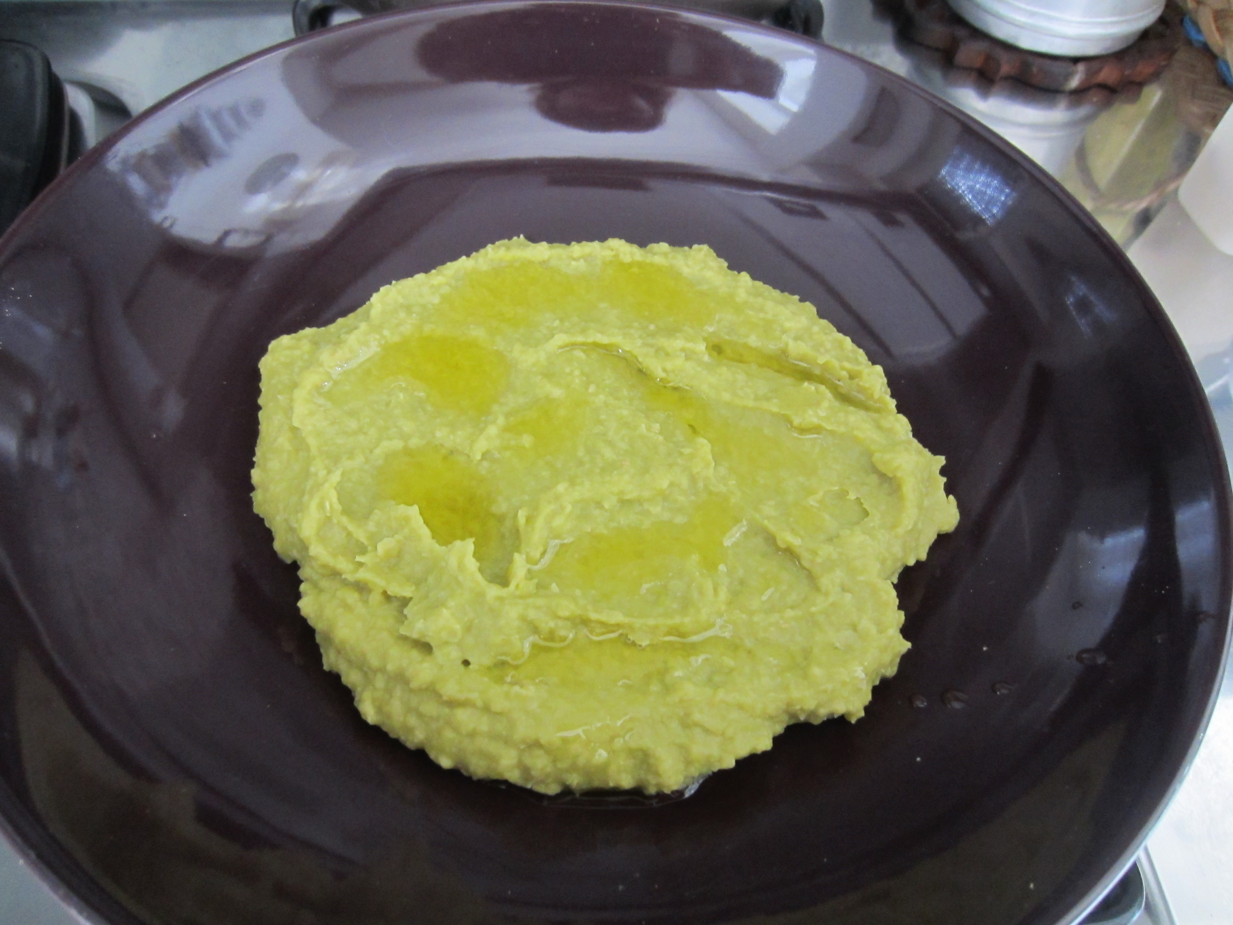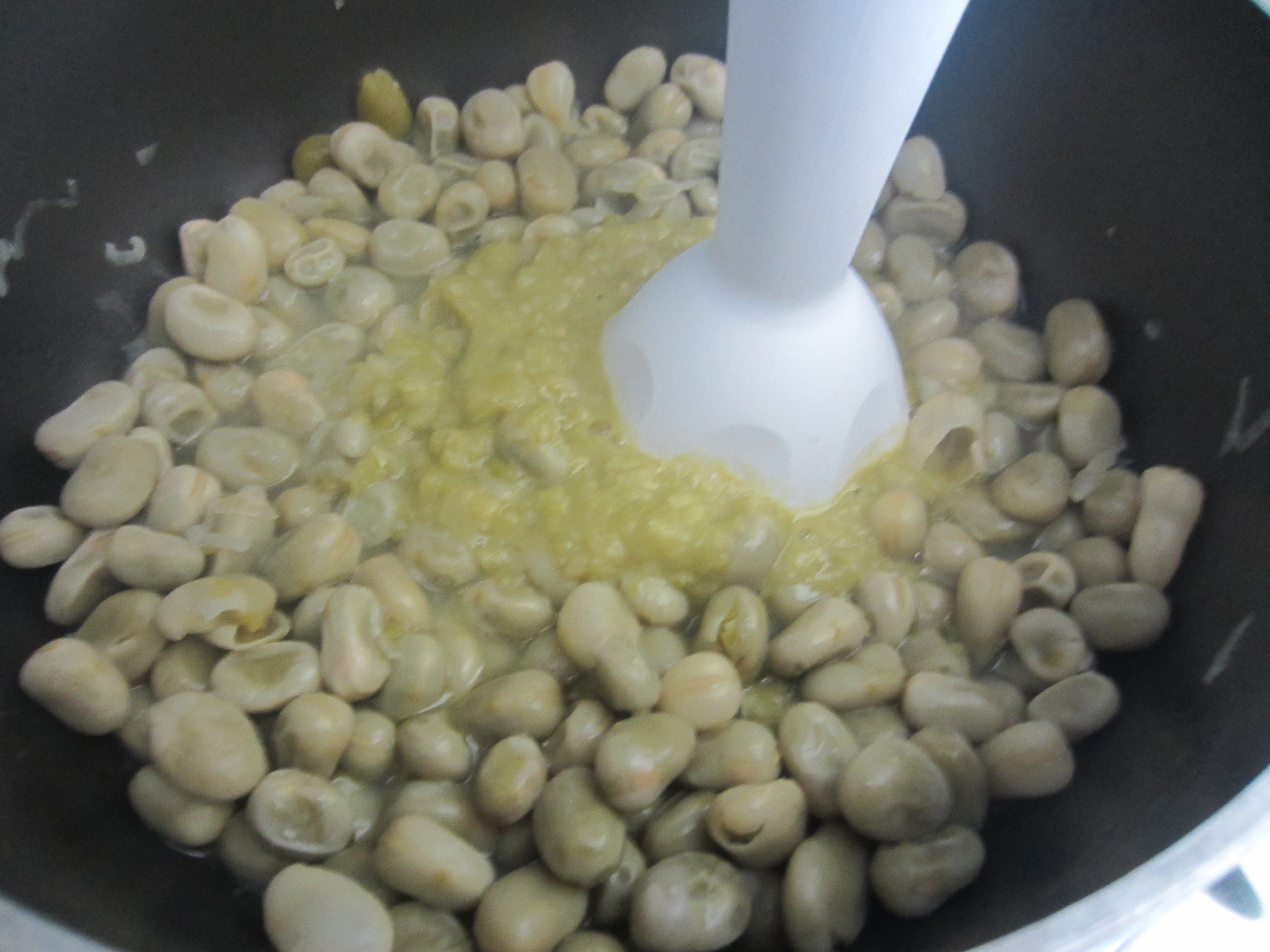 Turn off the heat also of the fava beans : again you must have to have a little ‘ cooking water . Blend well the fava beans with an immersion blender to get your macco.