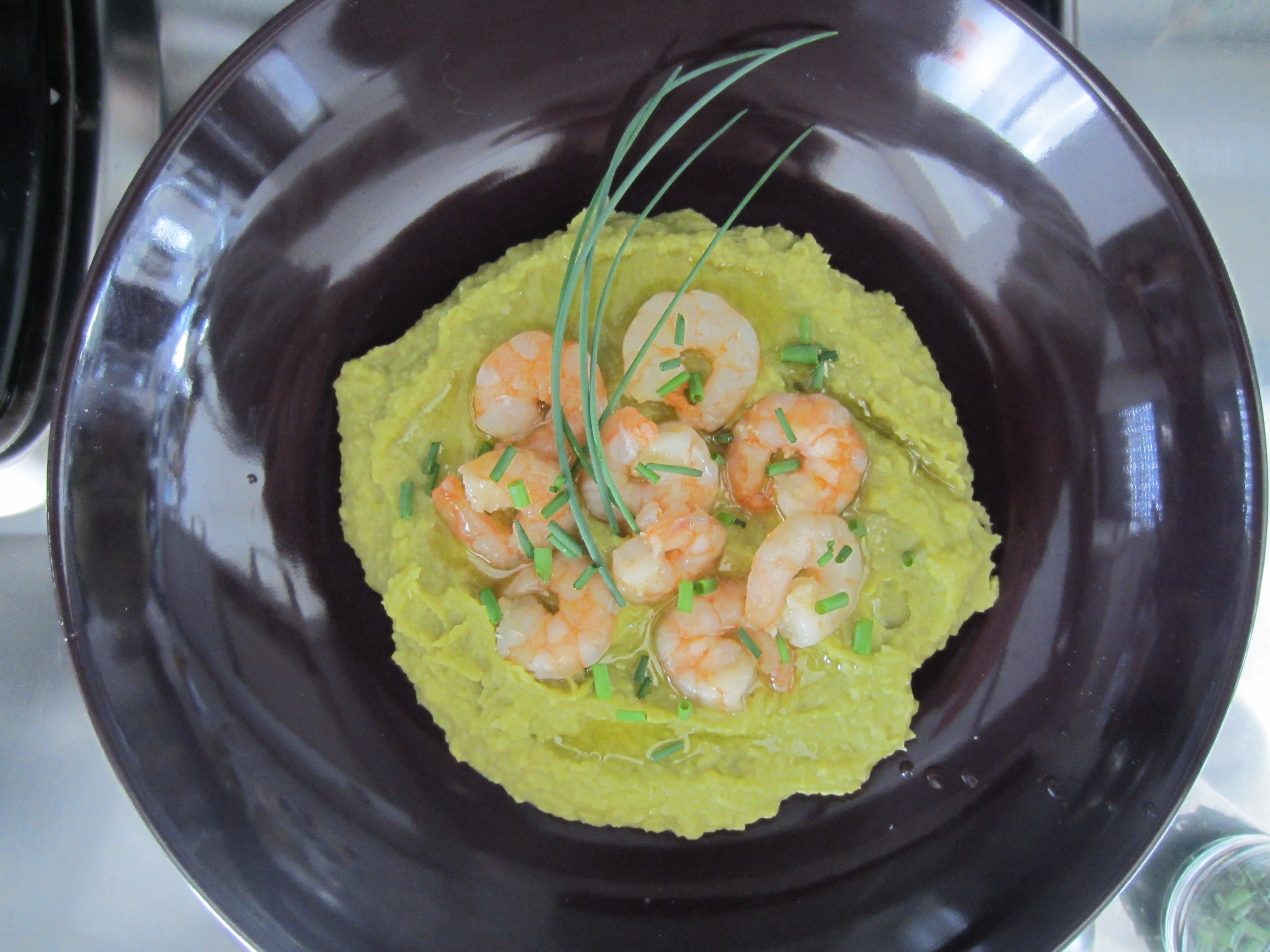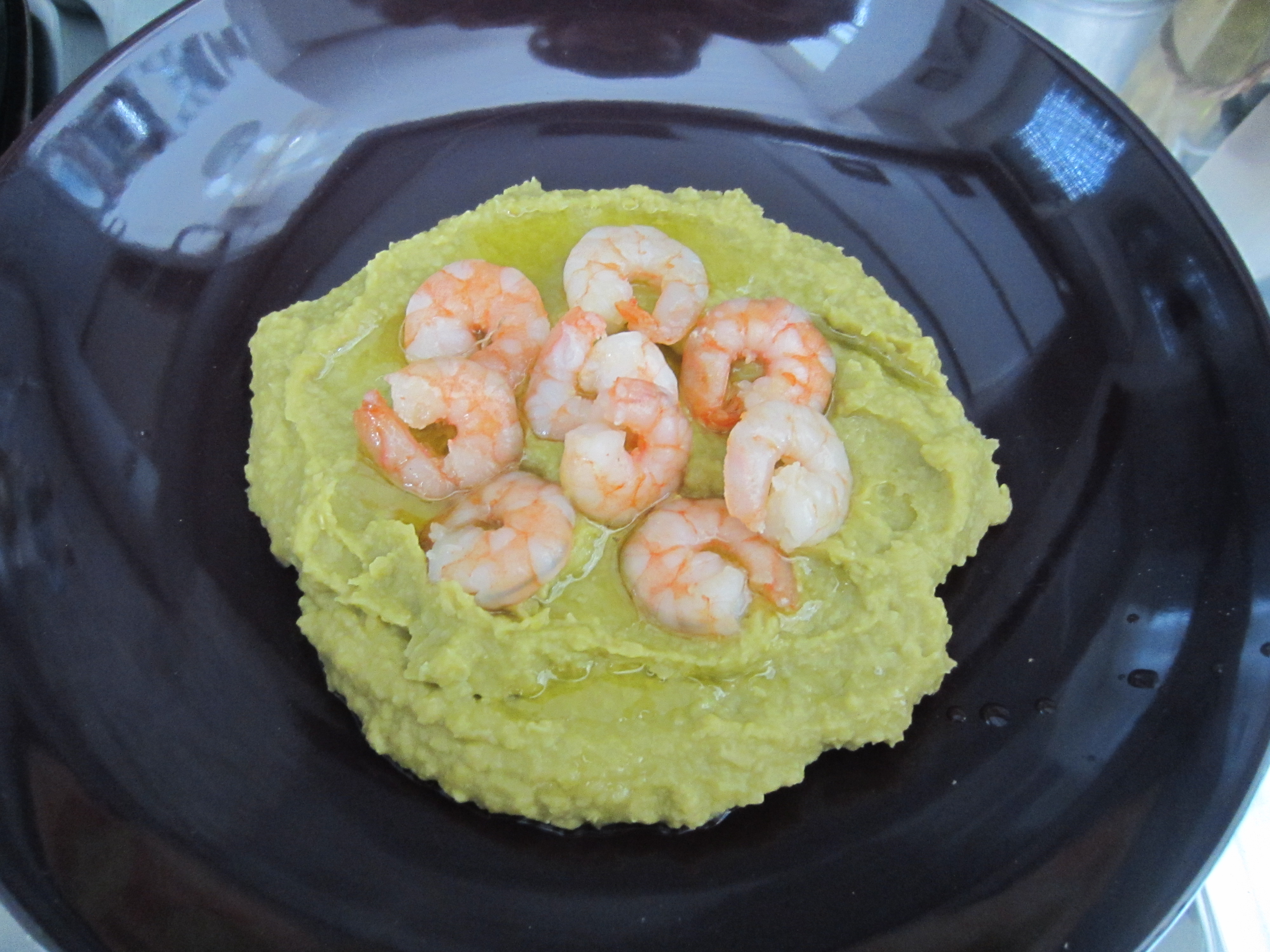 King Prawns on Mashed Fava Beans, the famous Fava Beans Sicilian Macco