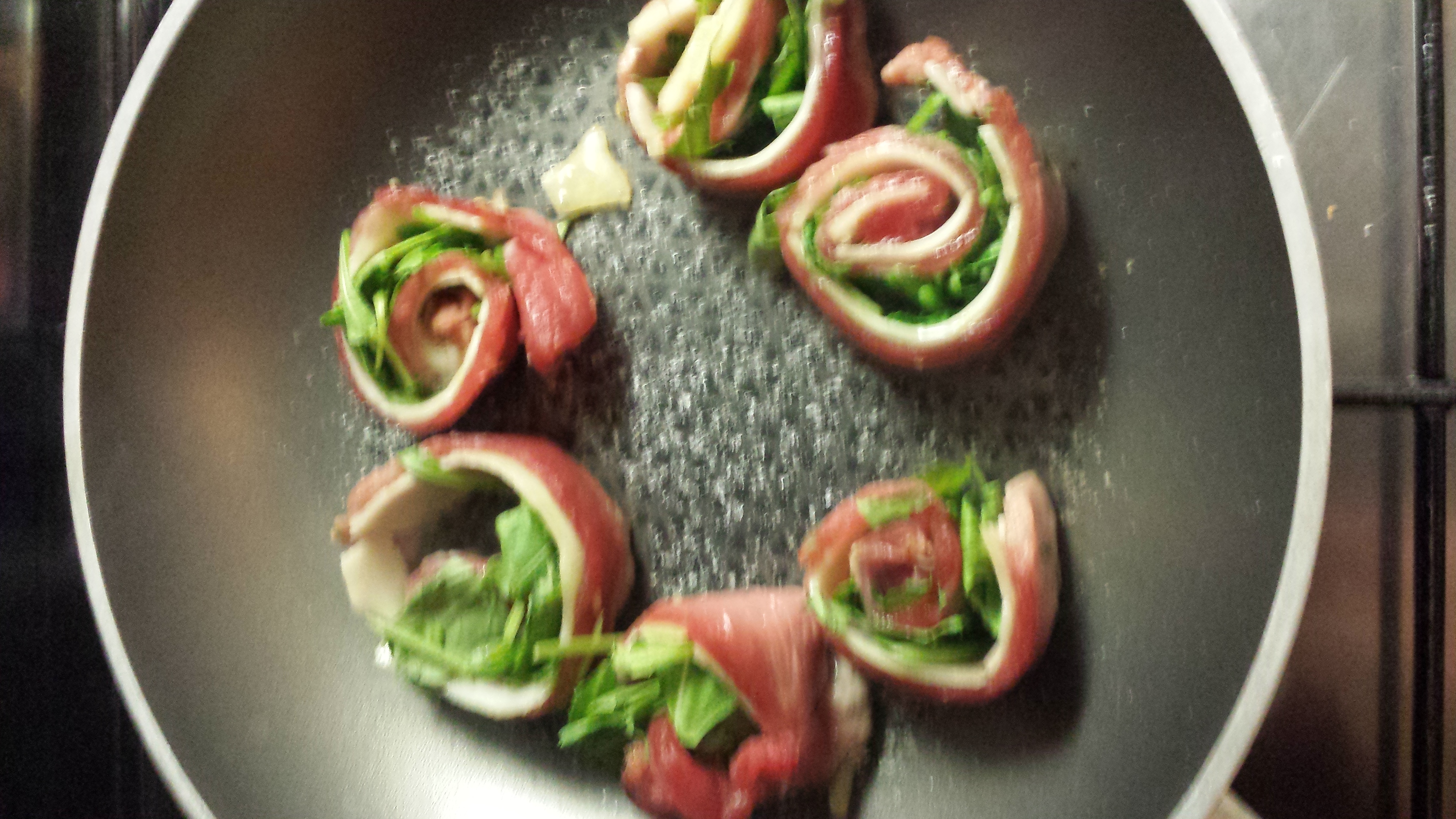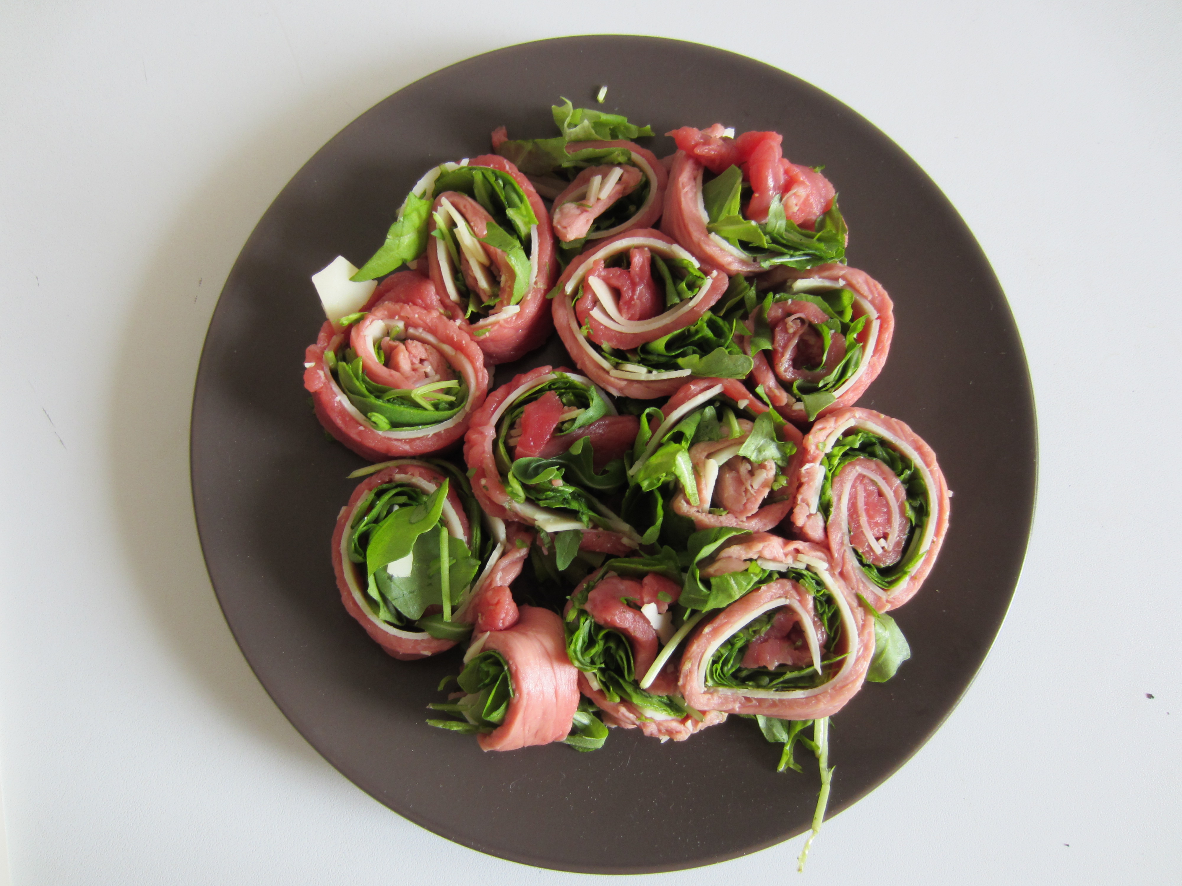 Mini Meat Rolls with Parmesan, Arugula and Oregano