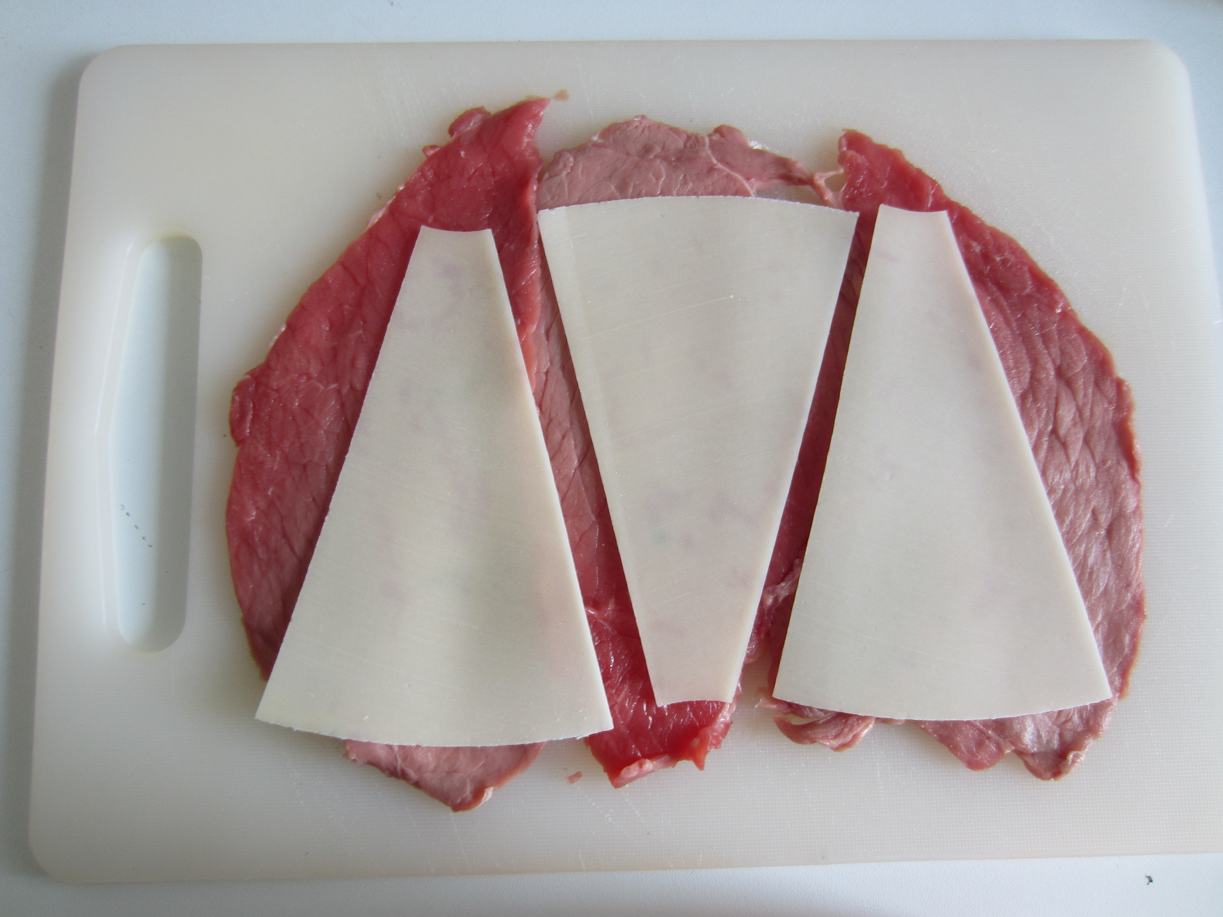 Then put the parmesan on the meat slices