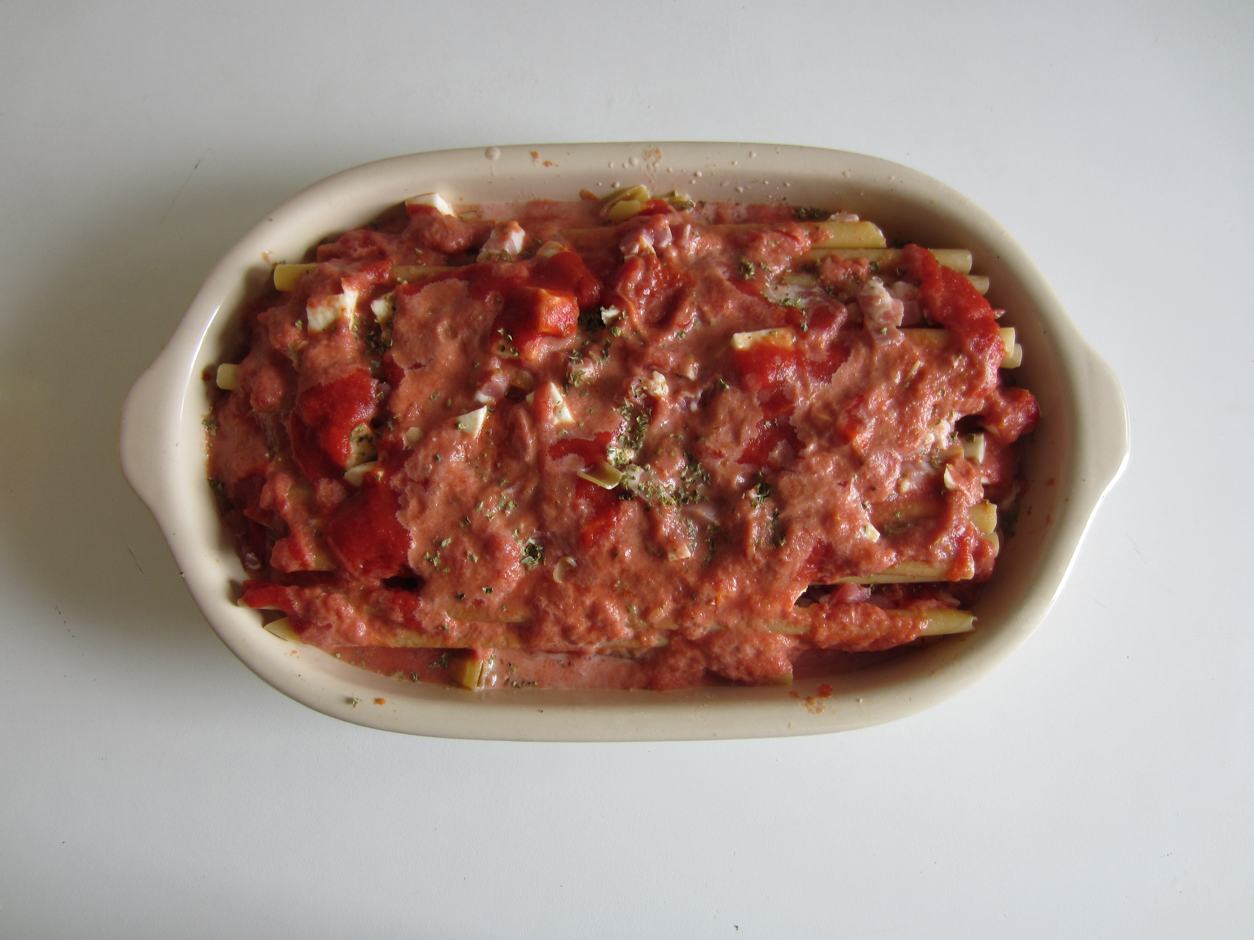 Baked Pasta – Ziti with Passata , Mozzarella , Bacon, Oregano and Parmesan
