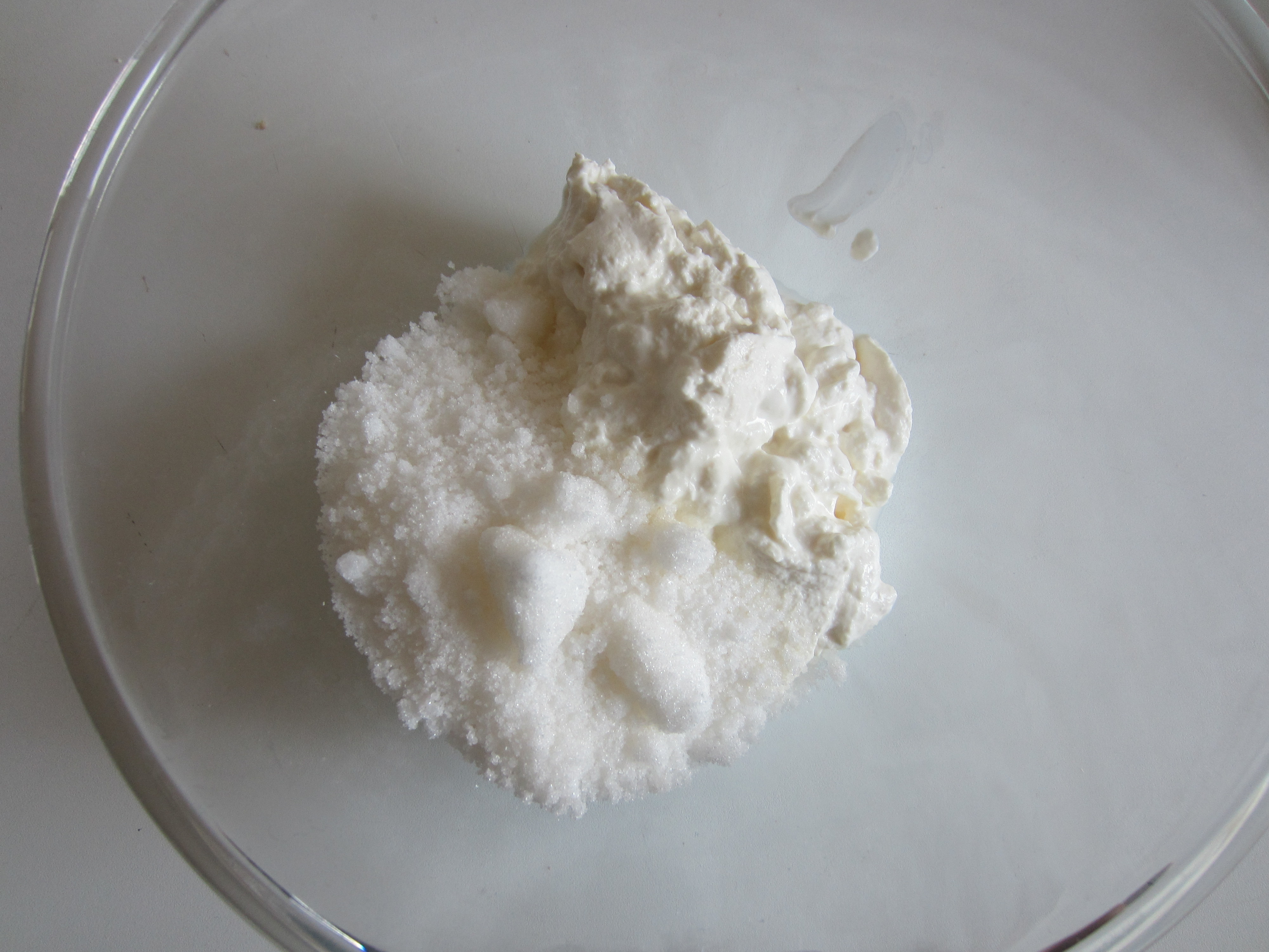 Preheat the oven to 160 degrees C (325 degrees F). In a large bowl, beat with a whisk (or a planet) sugar with ricotta.