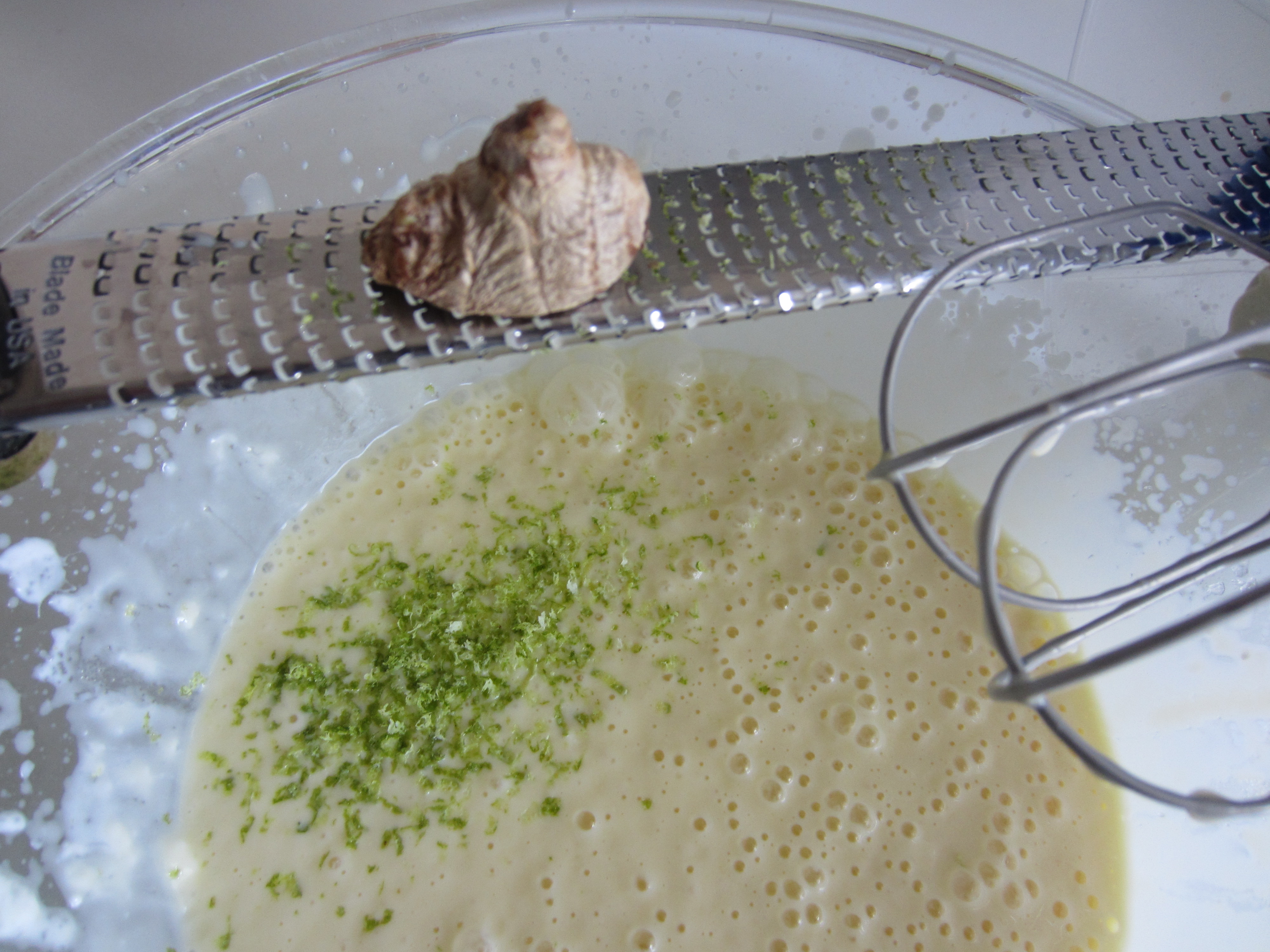 Add the grated lime zest and grated ginger (if you prefer you may not add it).