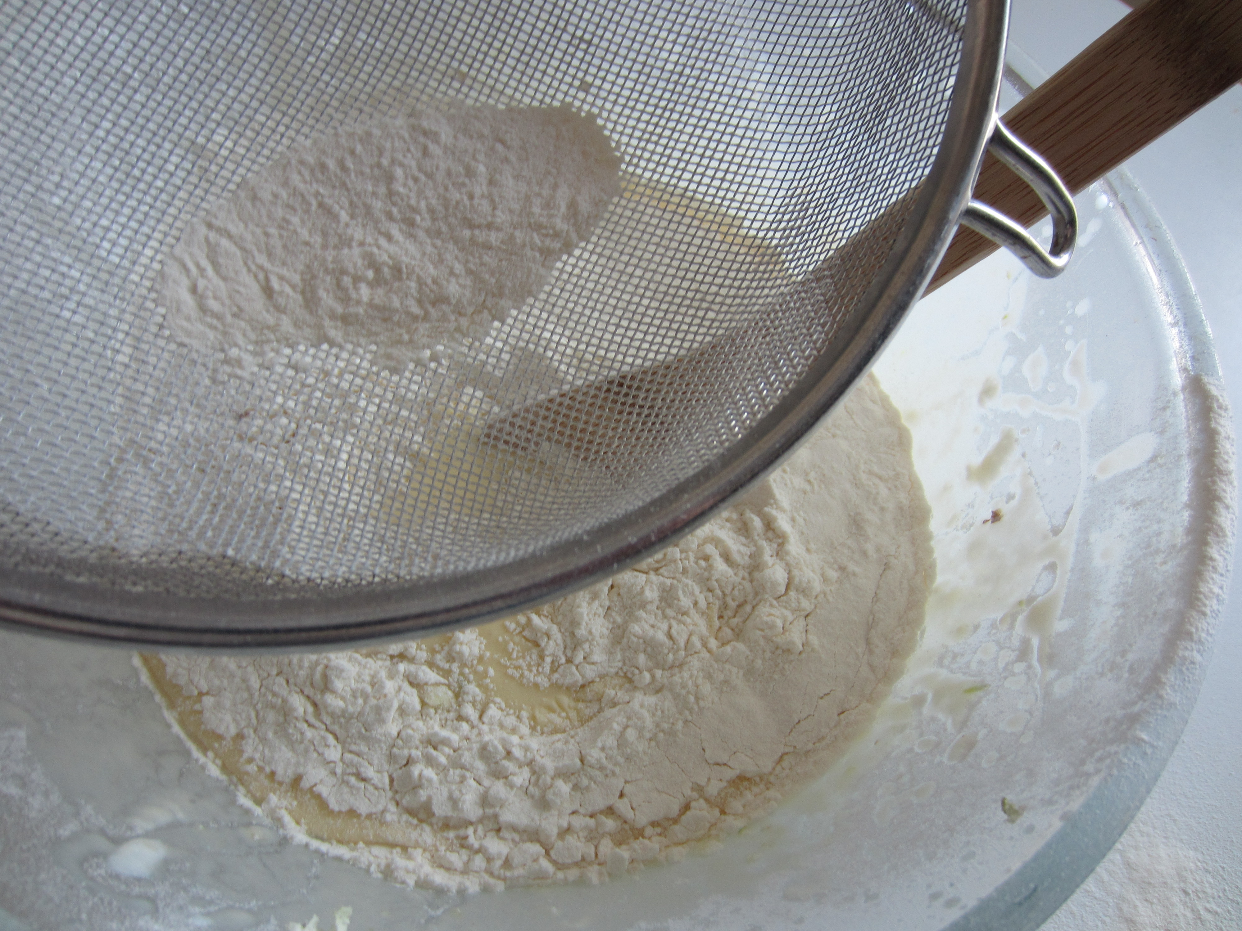 Sift the flour with the baking powder and add to the mixture, stirring with a wooden spoon until you get a smooth dough. If needed, use the whisk.