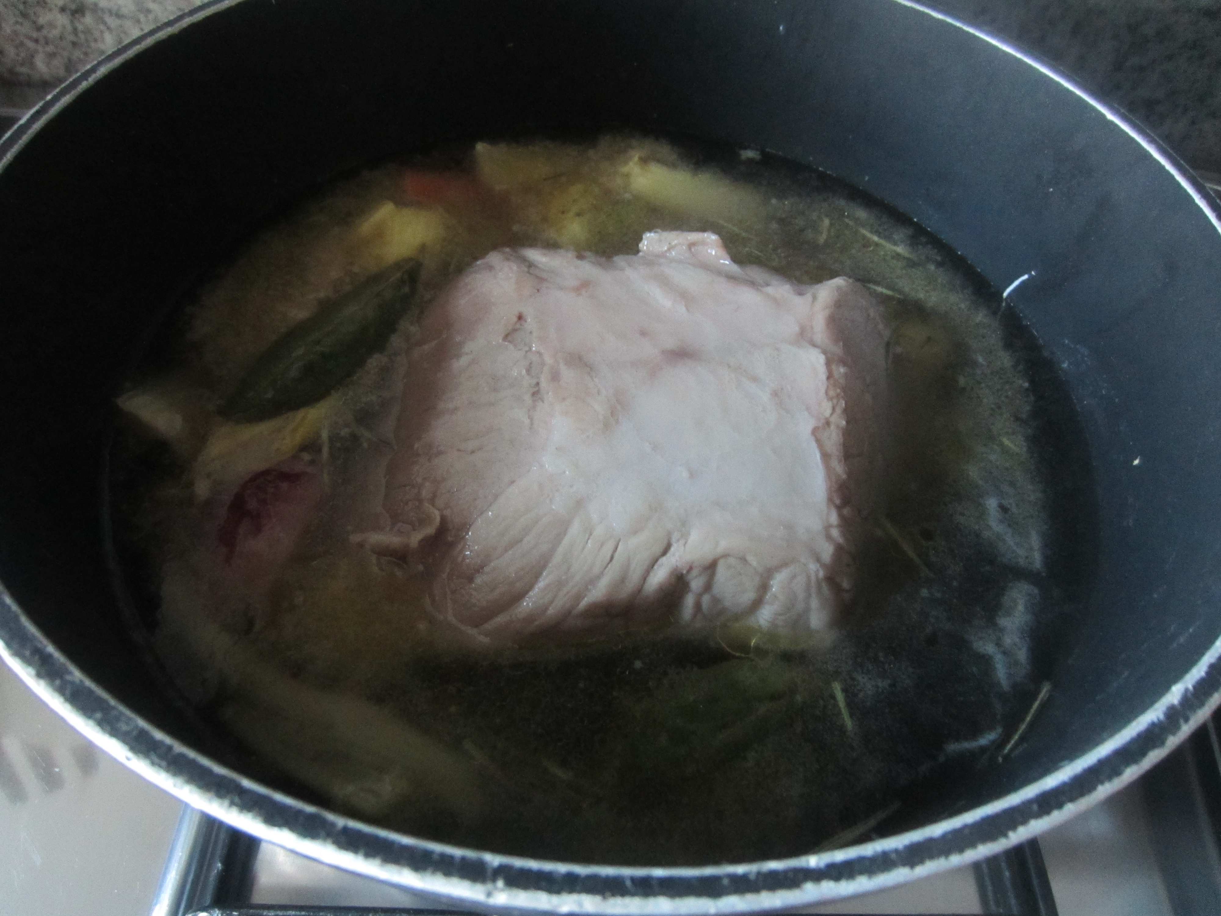 Put the lid on and cook the meat on low heat for about 1 hour in a half.
