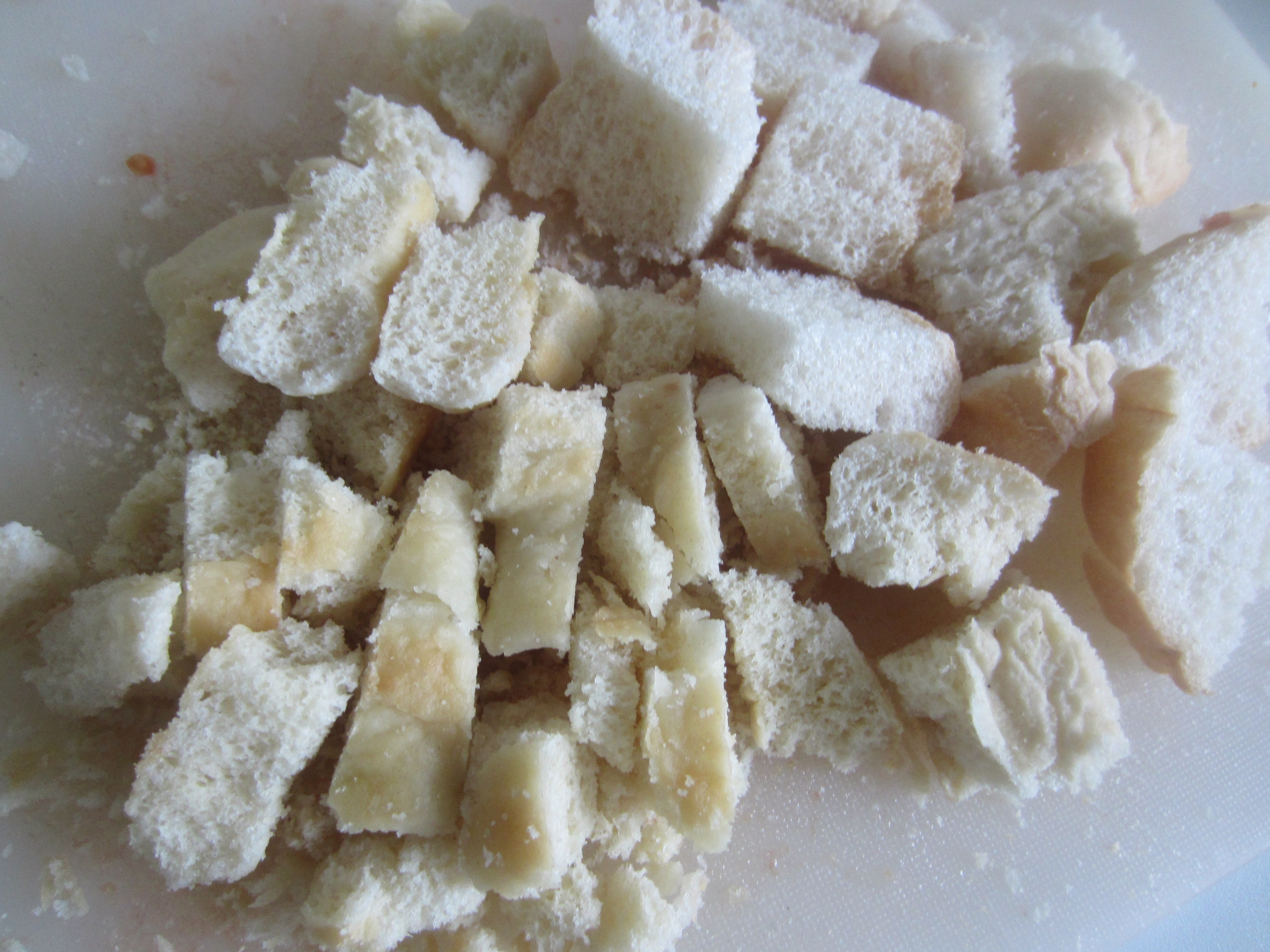 First of all, have the bread cut in pieces and tomatoes, very finely chopped.