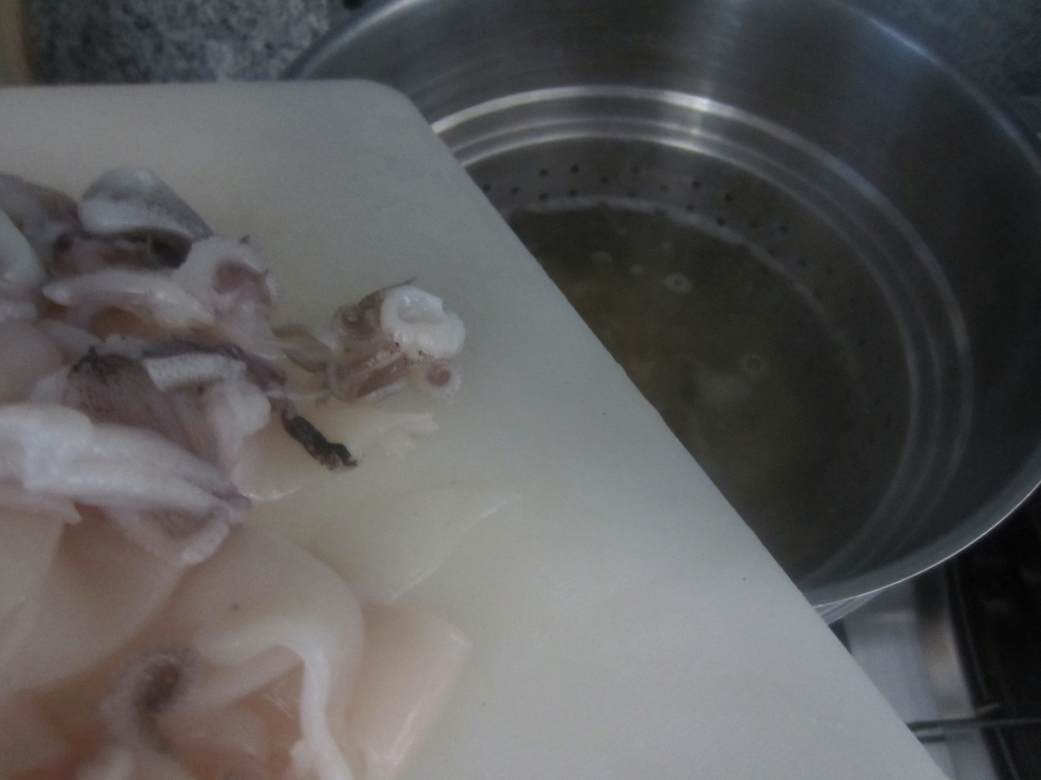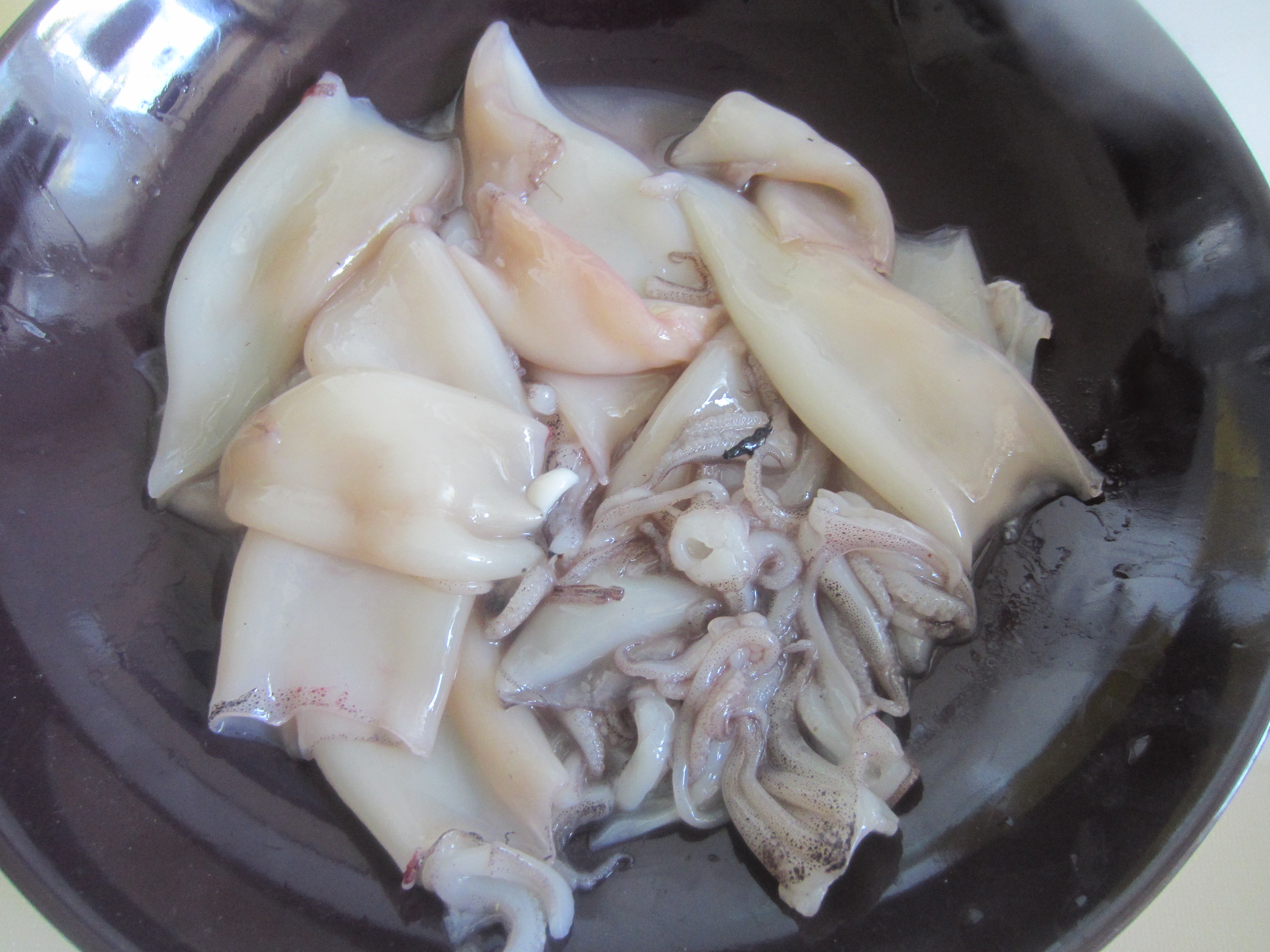 First , clean the squid by removing the skin, the internal parts and the mouth (or buy them already cleaned ) .