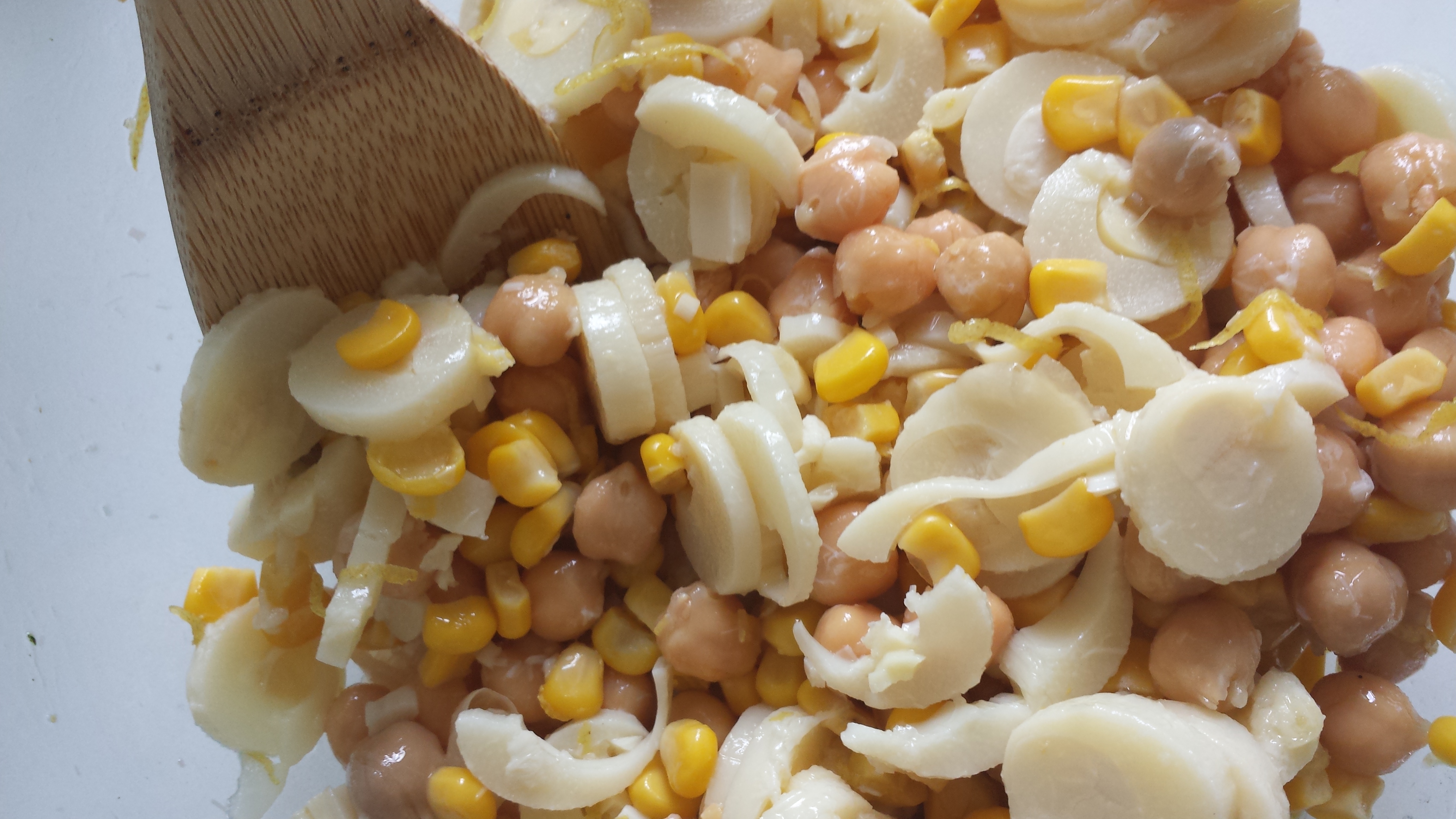 Heart of palm, Corn,Chickpea and Avocado Salad: yummy!