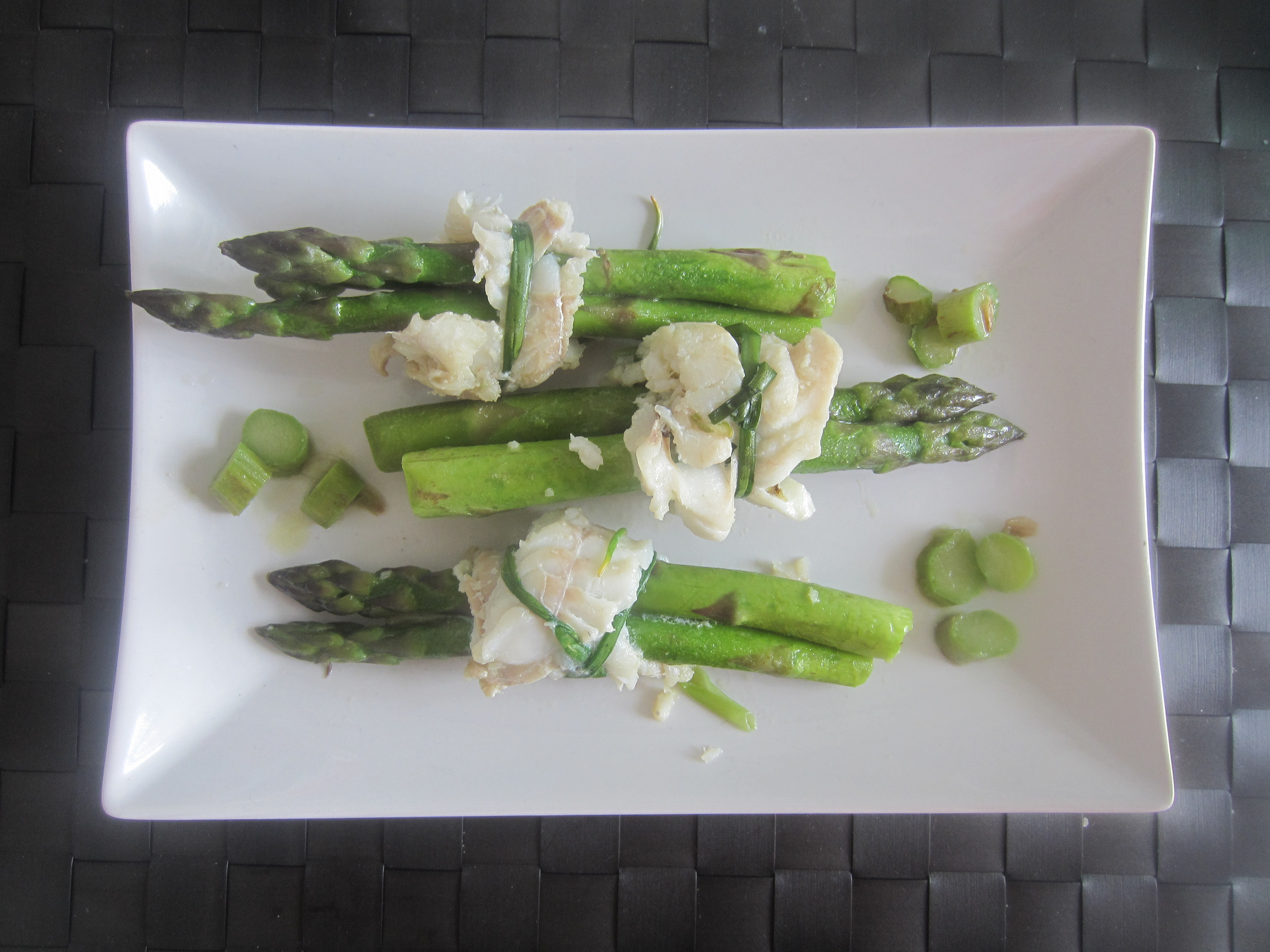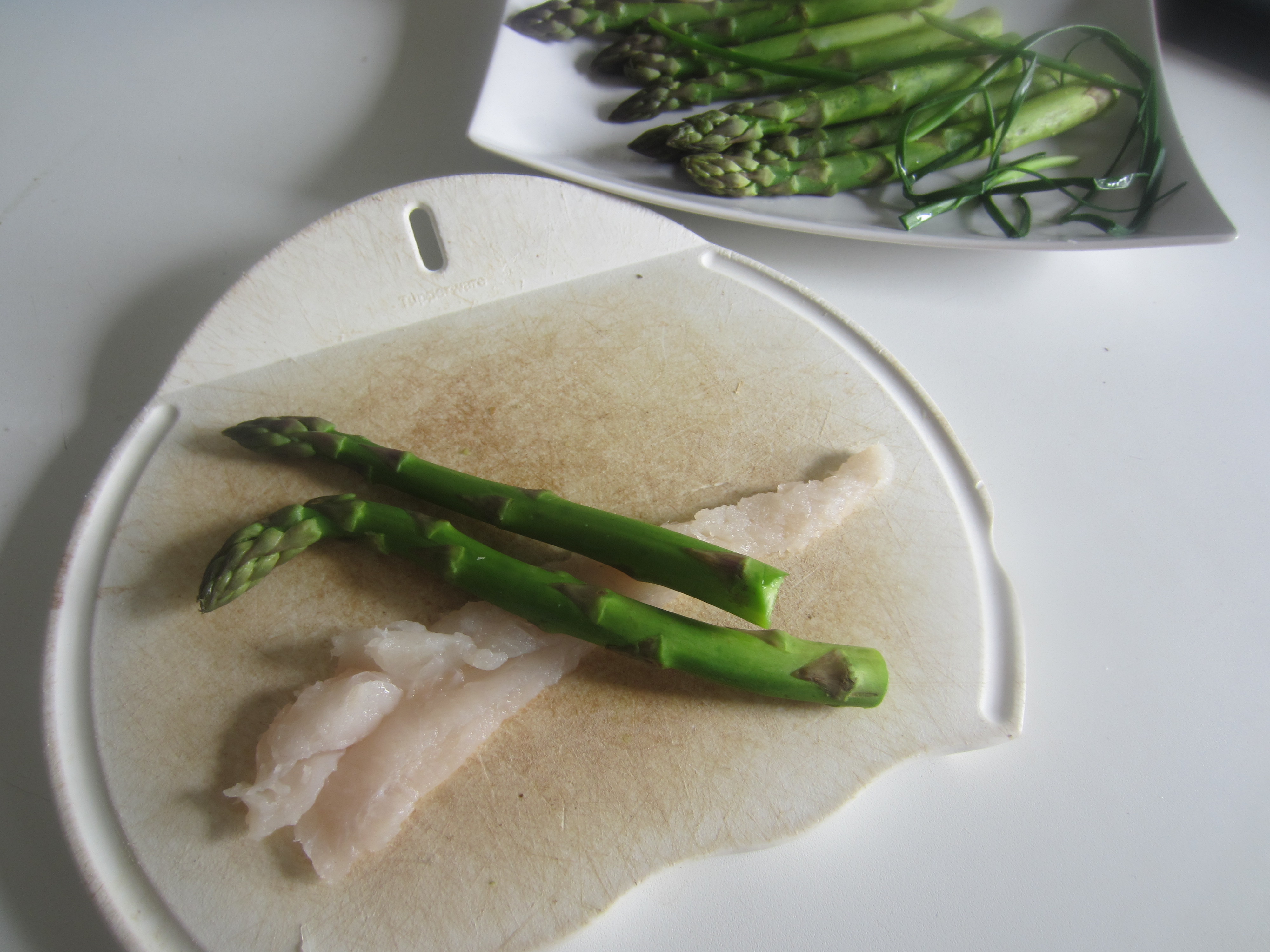 Cod and Asparagus Rolls tied with Chives