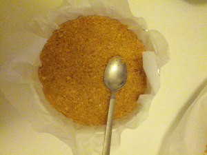 Then cover with a baking paper a baking pan with a diameter of 20-22 cm and put in the mix creating a base for your cheese-cake