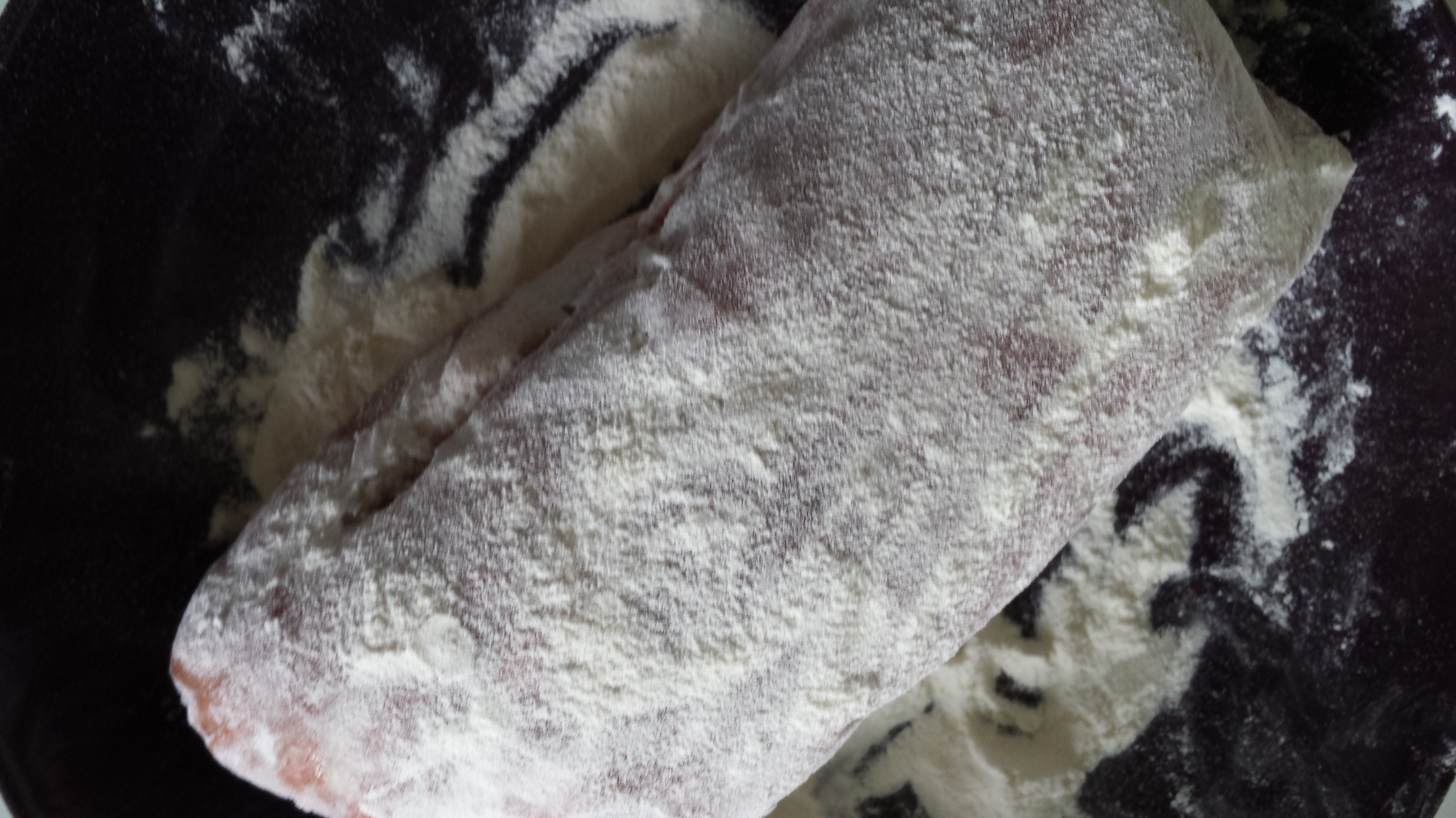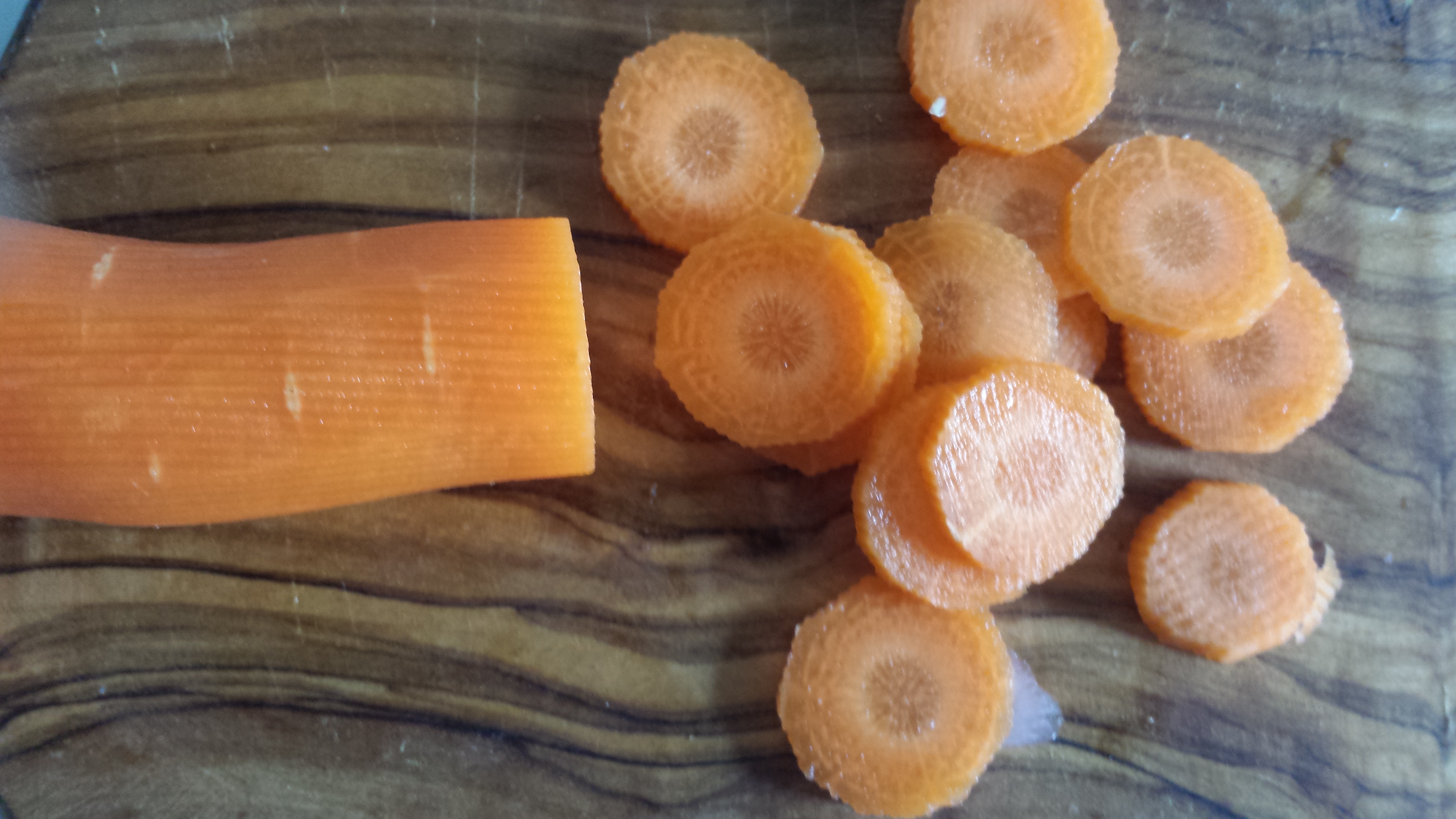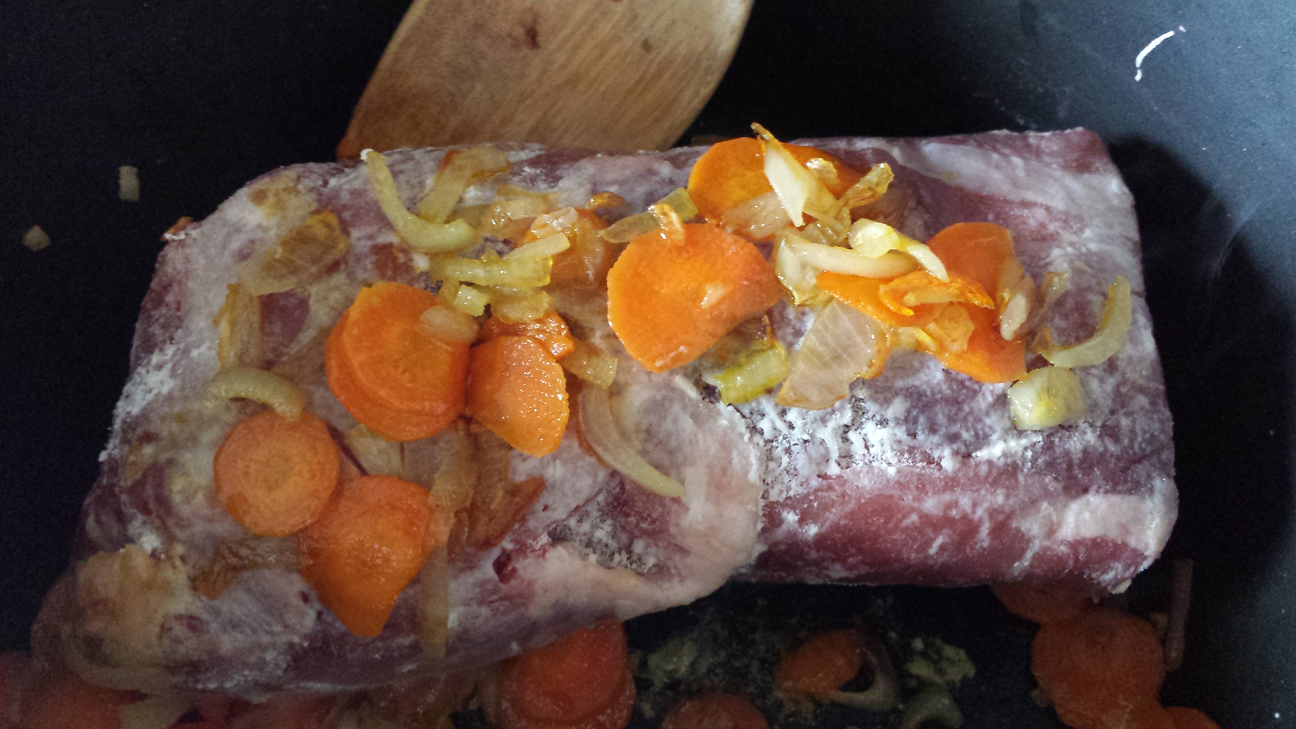1 turkey breast (or 1 pork tenderloin), 3 or 4 glasses of whole milk or low-fat or soy milk, 3 tablespoons of wild mustard (the one with the seeds inside), 1 carrot, 1 shallot, 2 or 3 cloves of garlic, and spoons of flour, 4 tablespoons olive oil. I do not add salt because the mustard flavor to everything in a perfect way.
