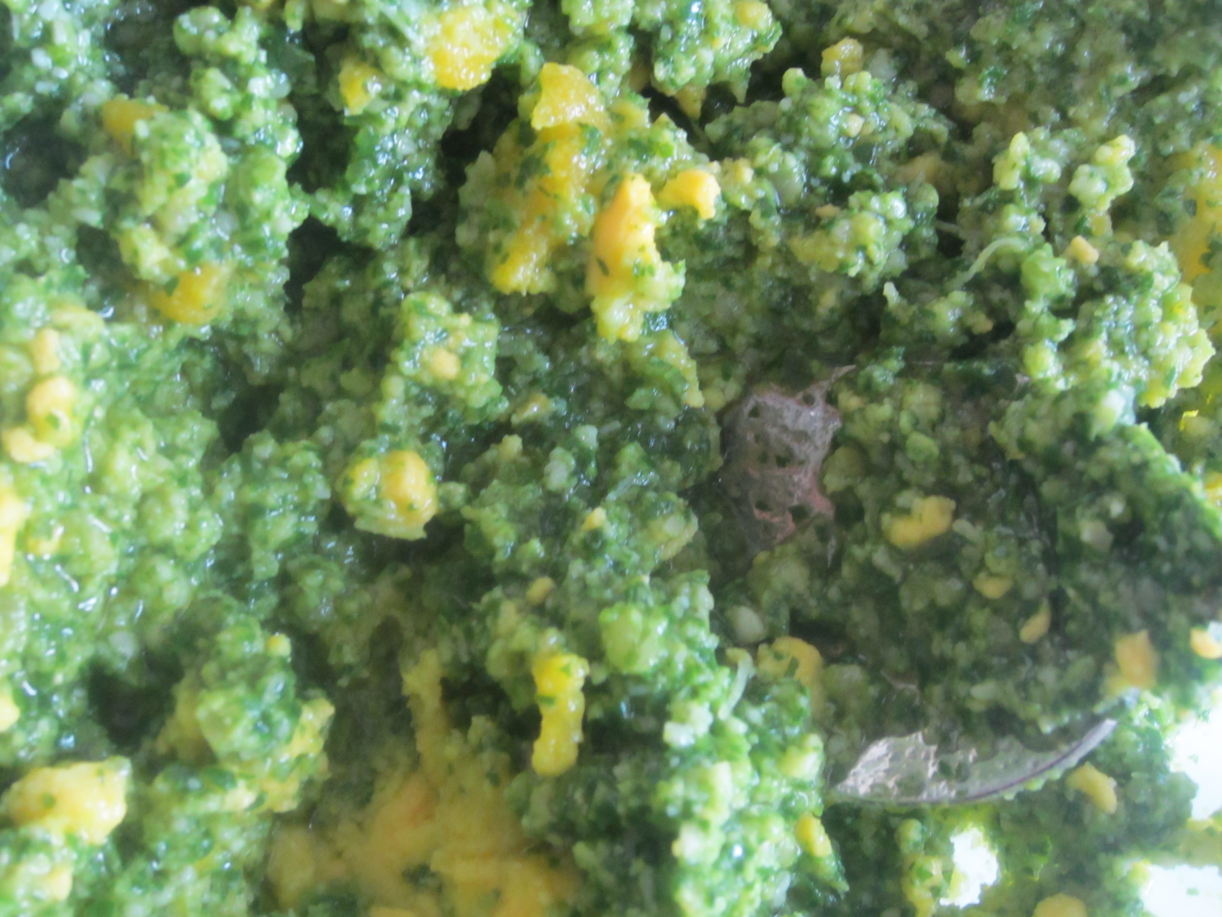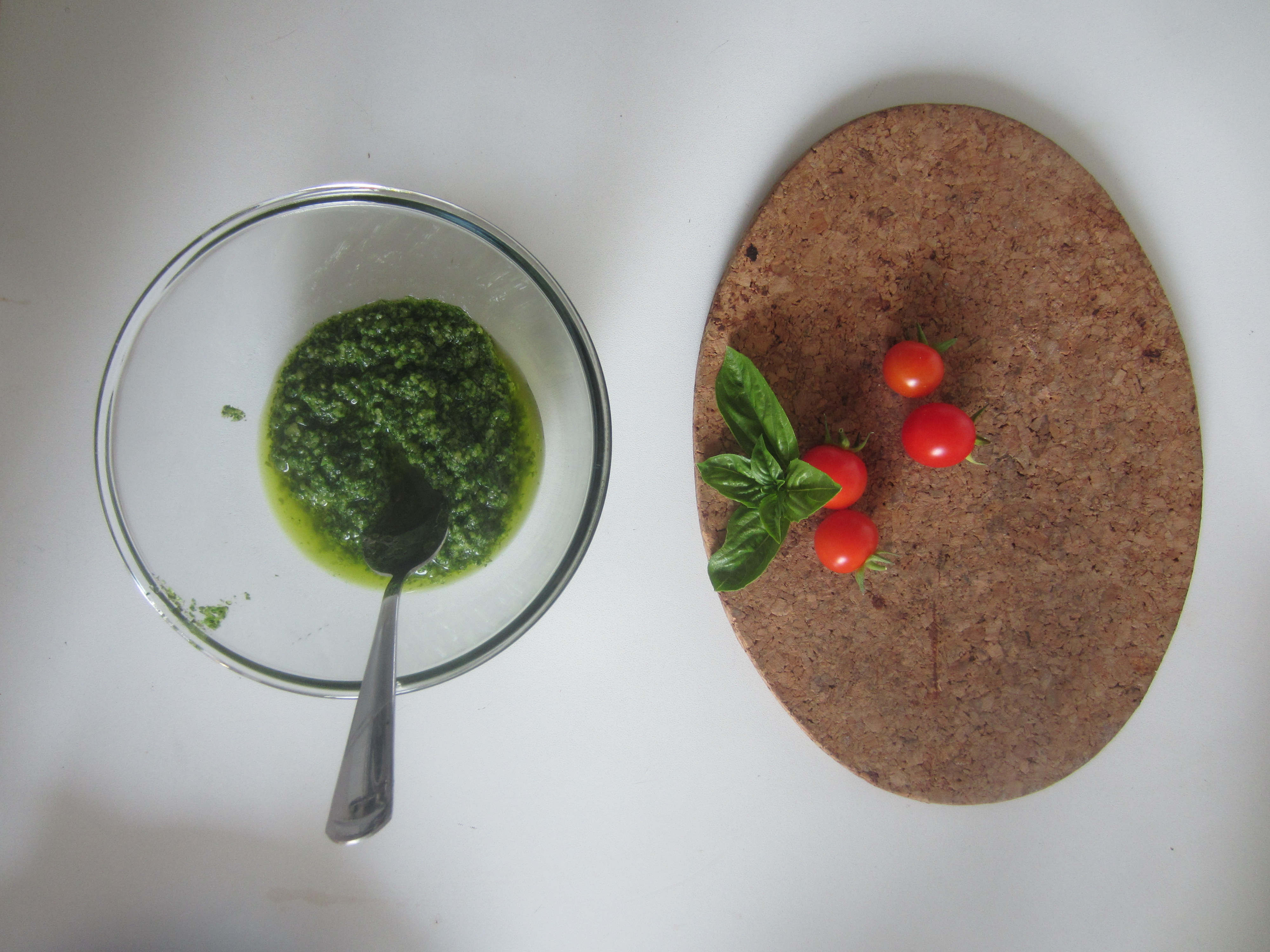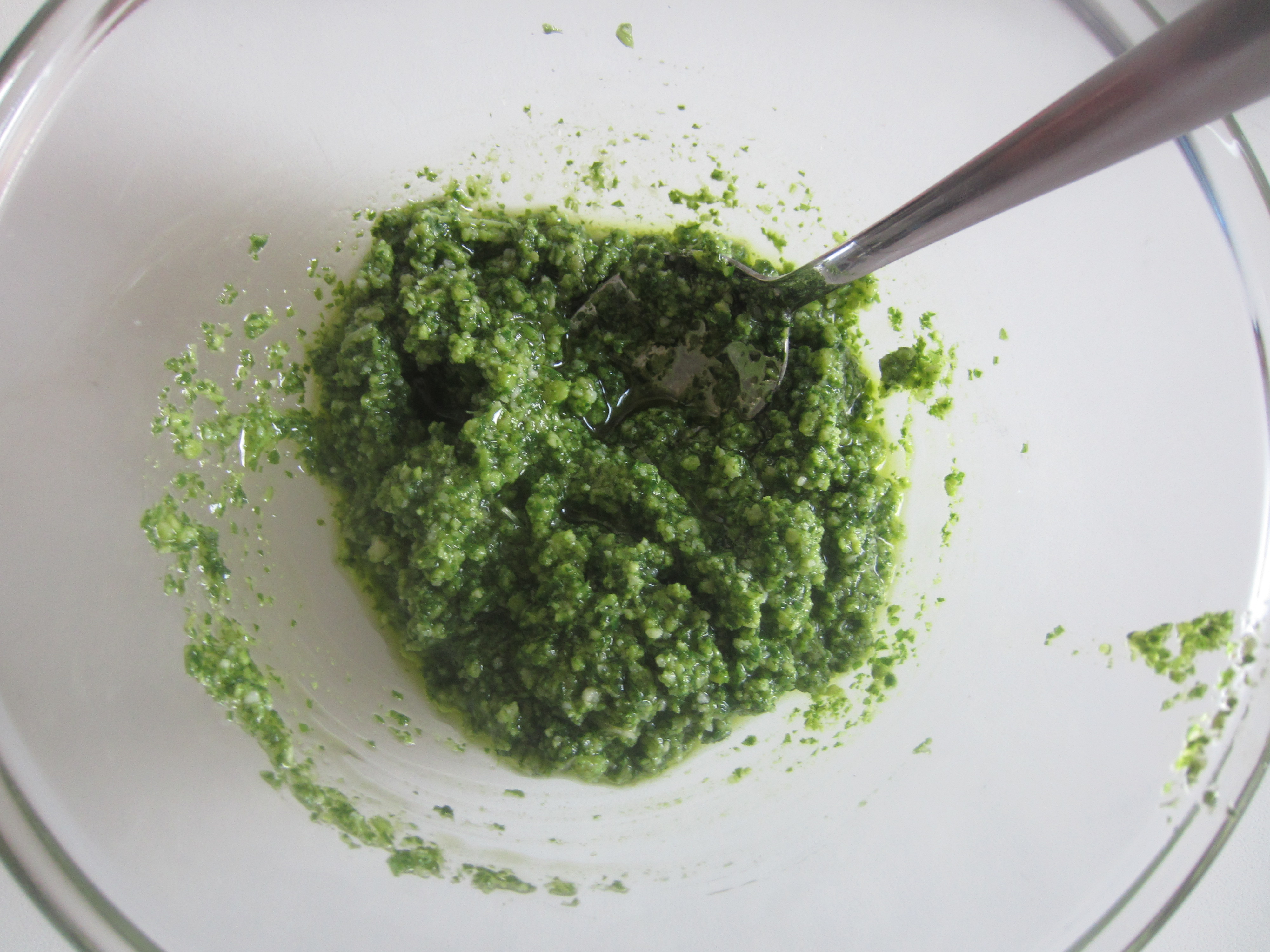 In a cup put the pesto, add the oil and the Parmesan and mix well.
