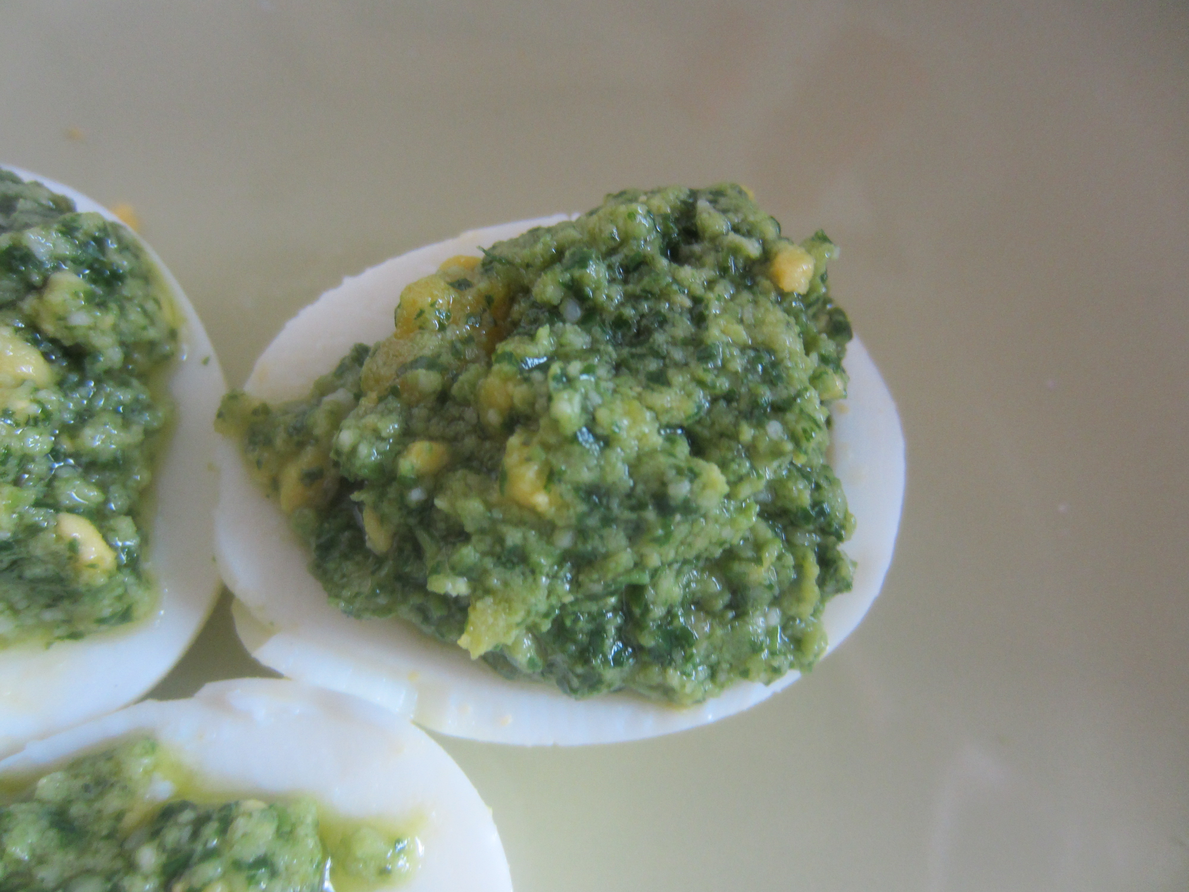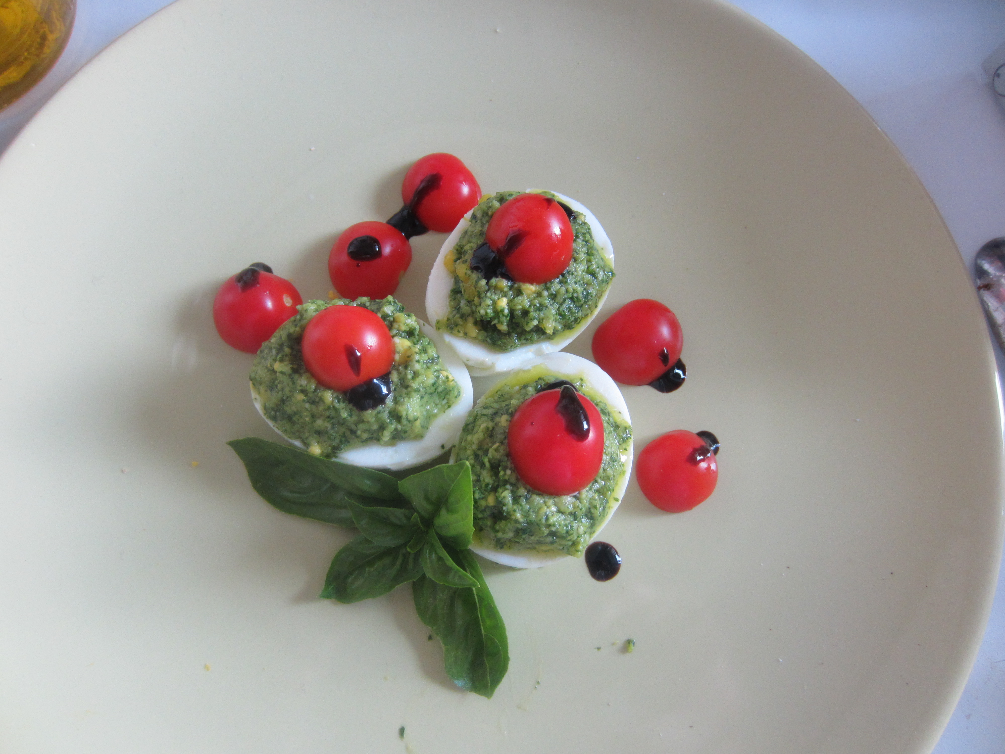 Stuffed Eggs with Pesto, Parmesan and a touch of Balsamic Vinegar: the perfect started for a Summer Sunday