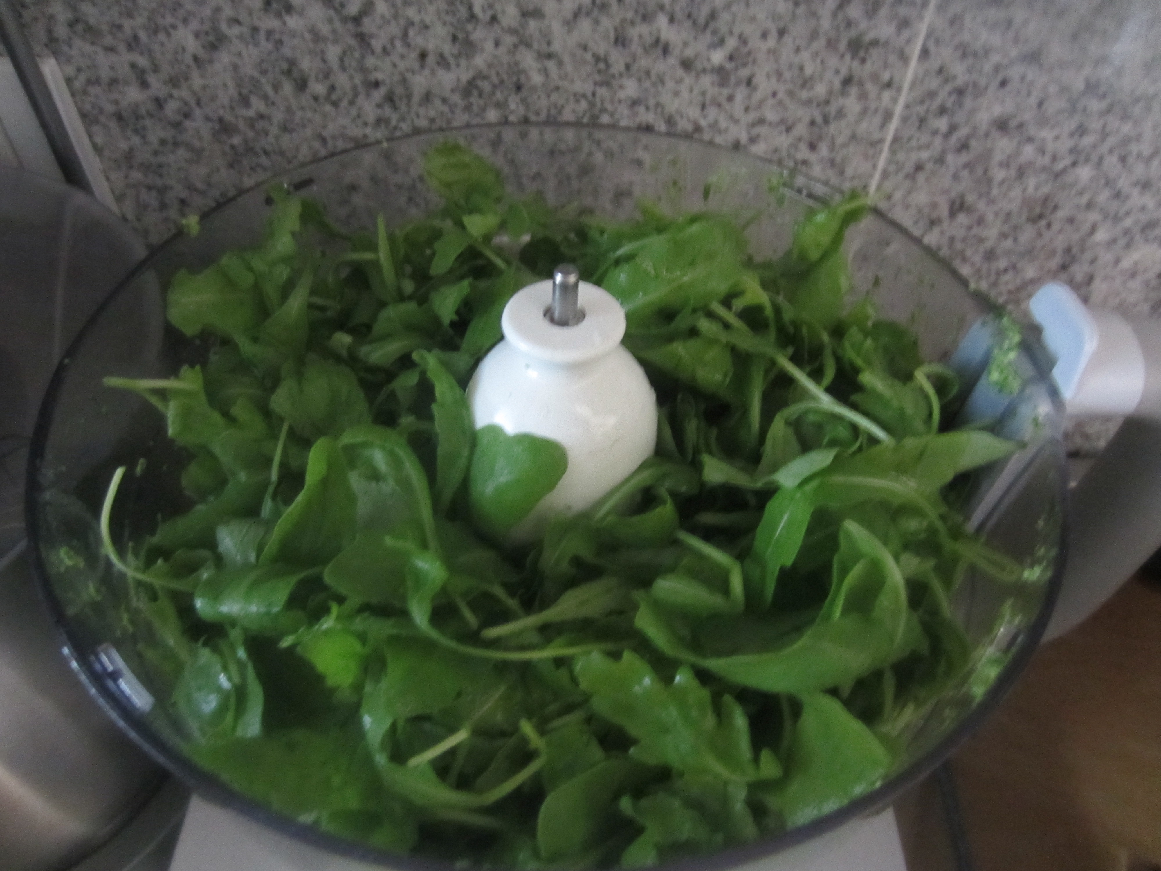 The Arugula Pesto is a fantastic different pesto – still vegetarian -simply done with different ingredients, but still tasty and fresh.