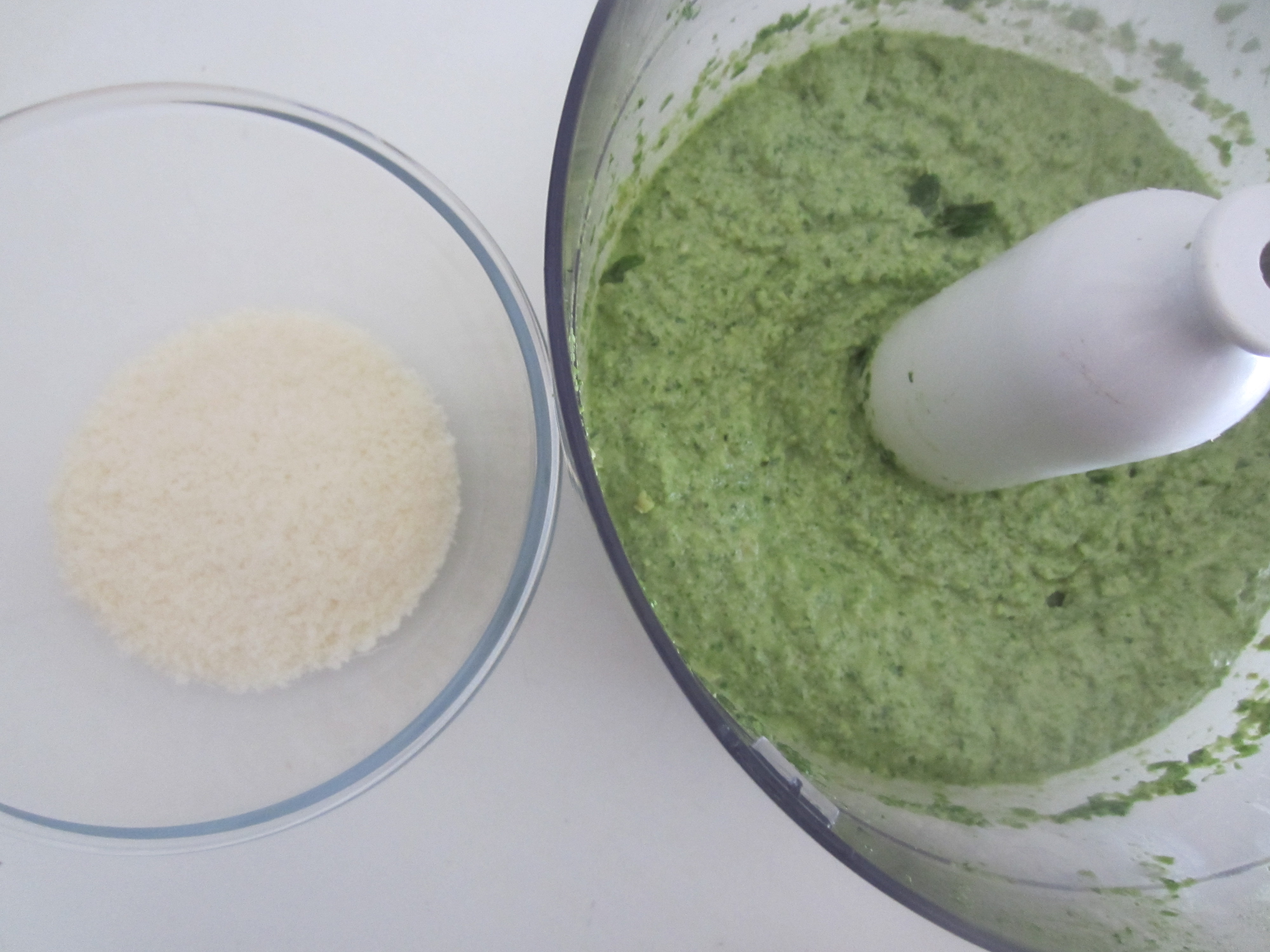 To complete the pesto, add 100 grams of Parmesan and mix well.