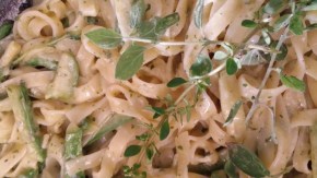 Pasta with Zucchini, Onions, Eggs and Mediterranean scents